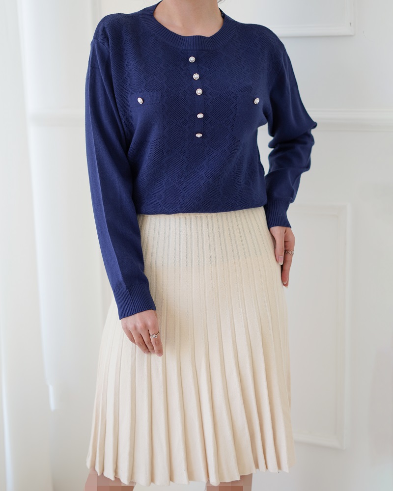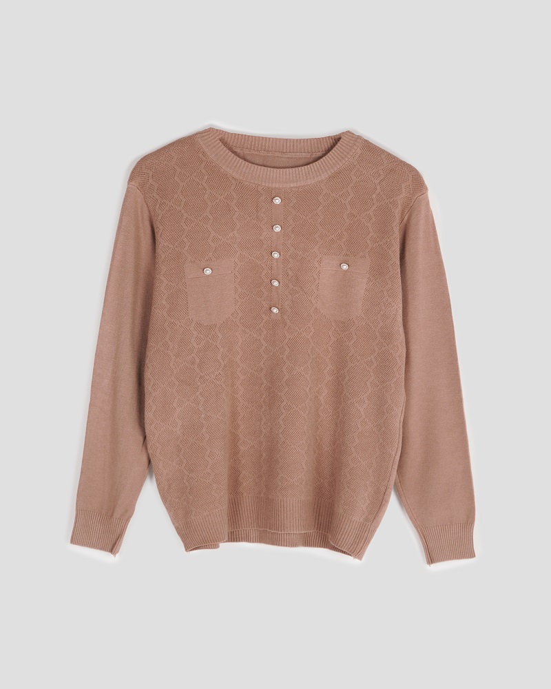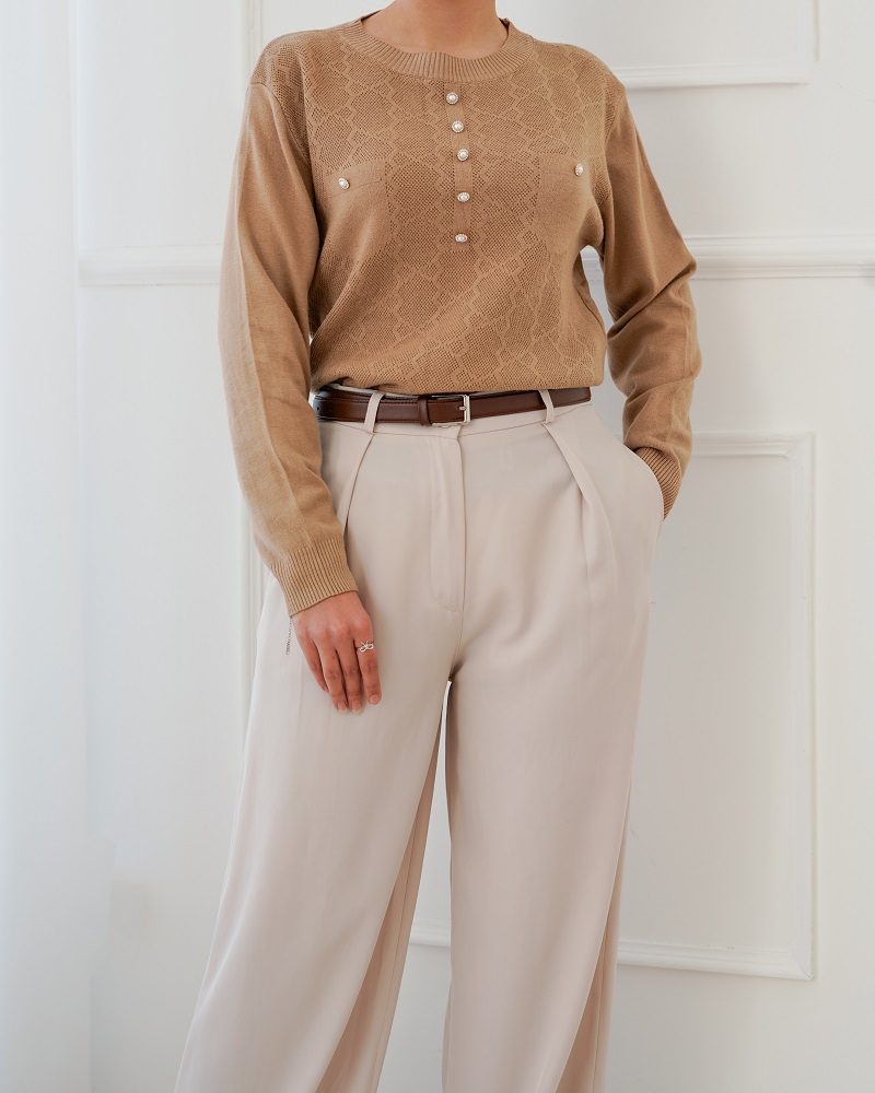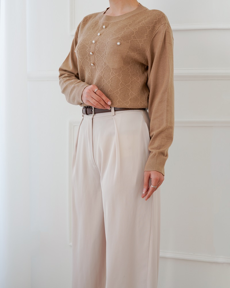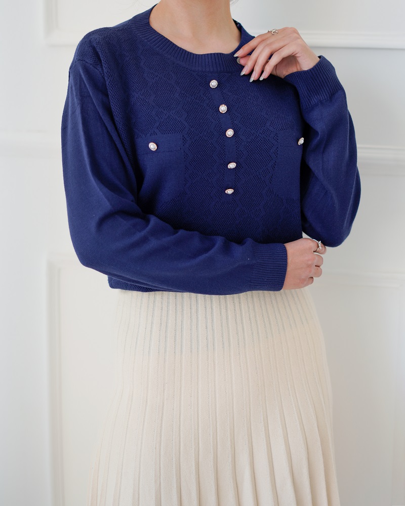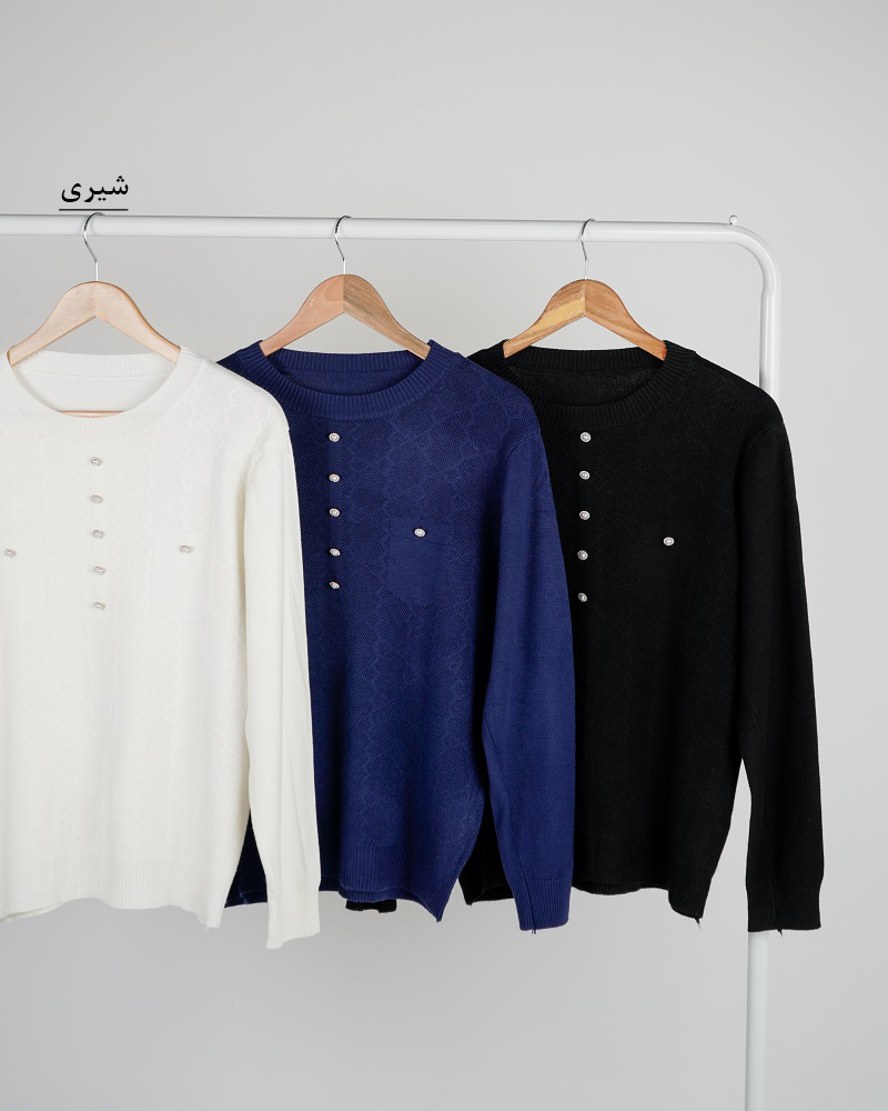 - توضیحات محصول: جنس بلوز بافت لطیف می باشد. بلوز یقه گرد ،آستین بلند می باشد. دکمه های روی بلوز نما هستند. این محصول دارای کشسانی بسیار بالا و گرم و بسیار با کیفیت می باشد.