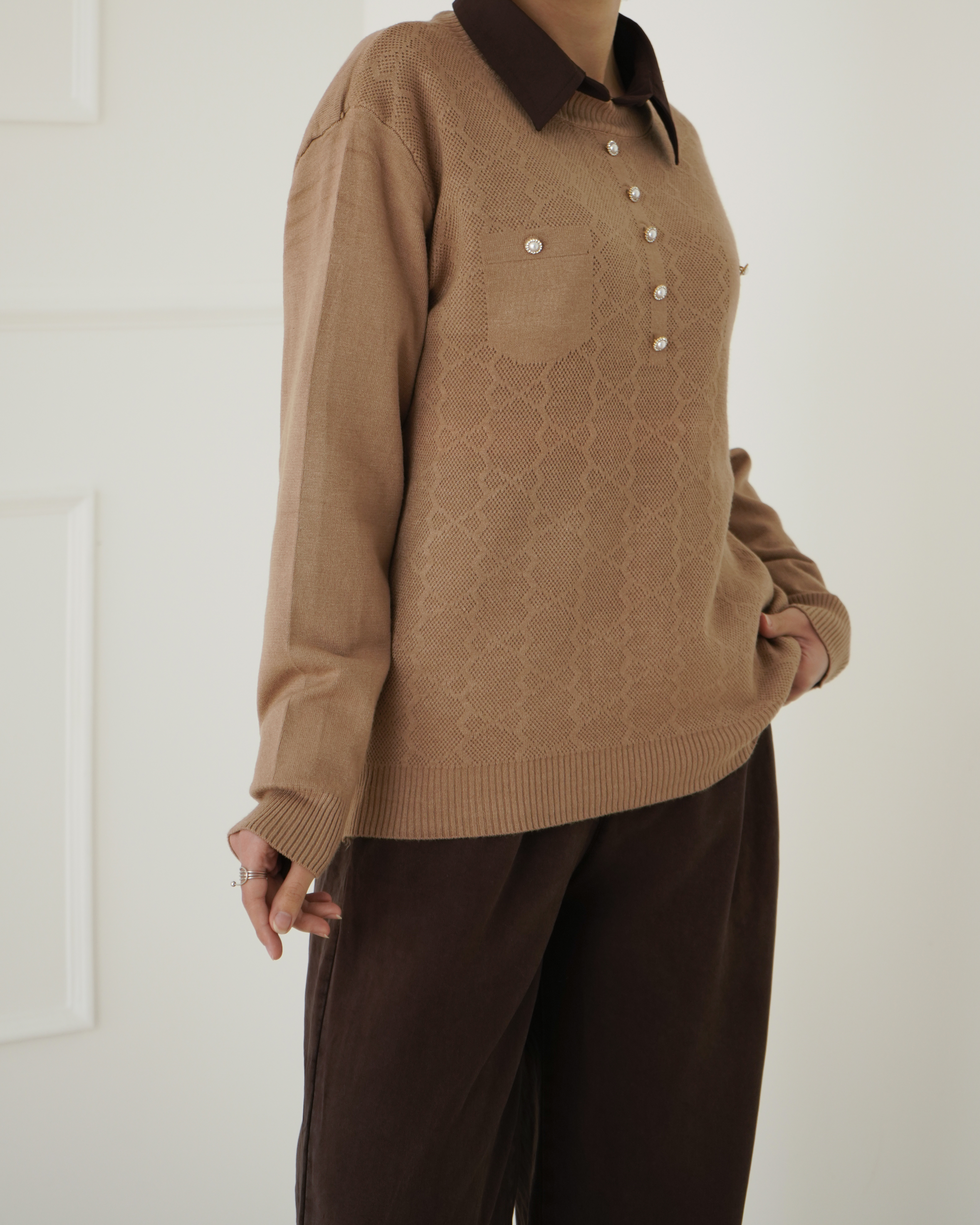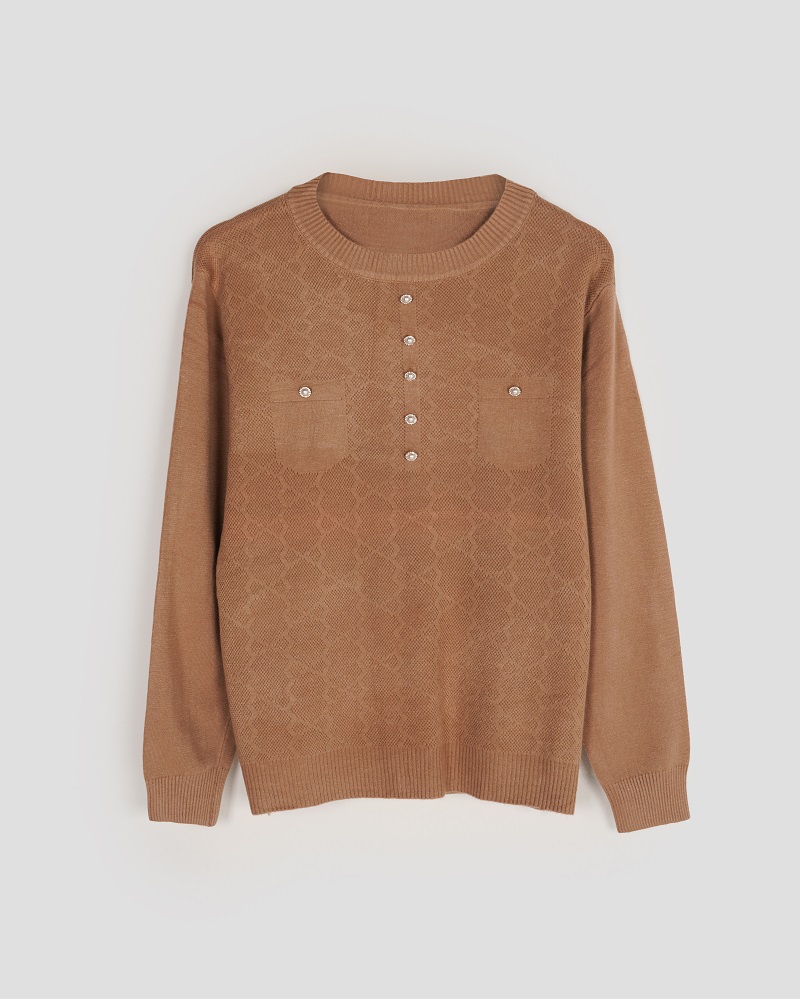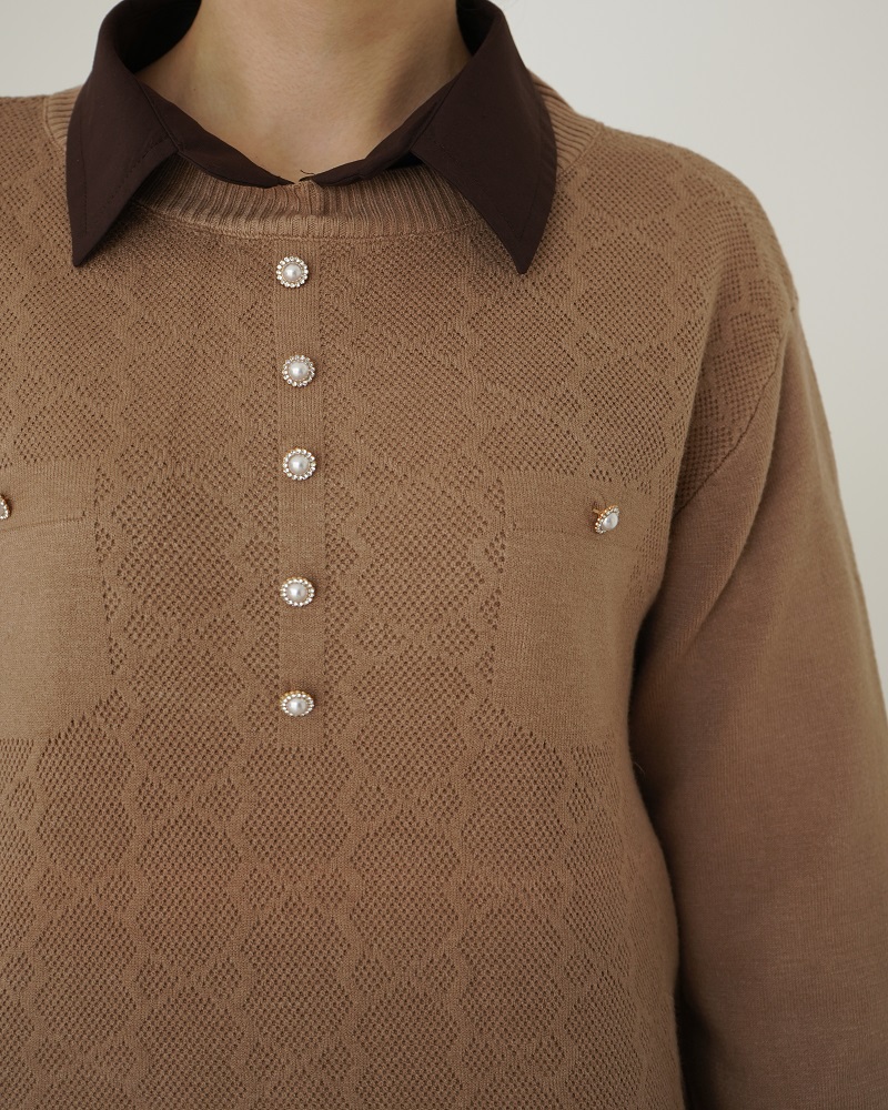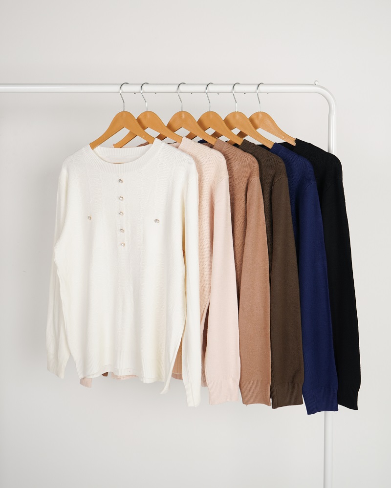 - توضیحات محصول: جنس بلوز بافت لطیف می باشد. بلوز یقه گرد ،آستین بلند می باشد. دکمه های روی بلوز نما هستند. این محصول دارای کشسانی بسیار بالا و گرم و بسیار با کیفیت می باشد.