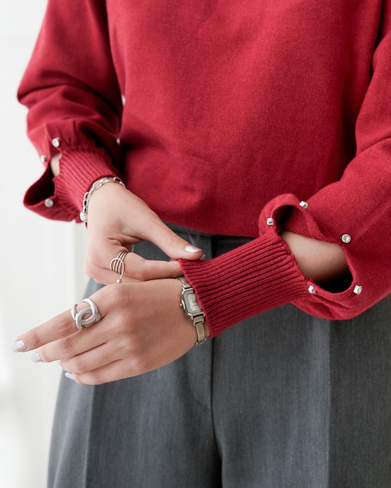 - توضیحات محصول: جنس بلوز بافت لطیف می باشد. بلوزبسیار لطیف همراه با کشسانی بالا می باشد. قسمت یقه و آستین بلوز مروارید کار شده است.
