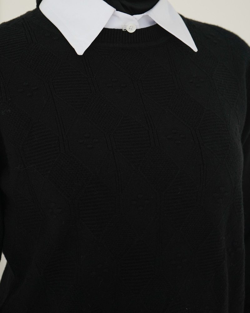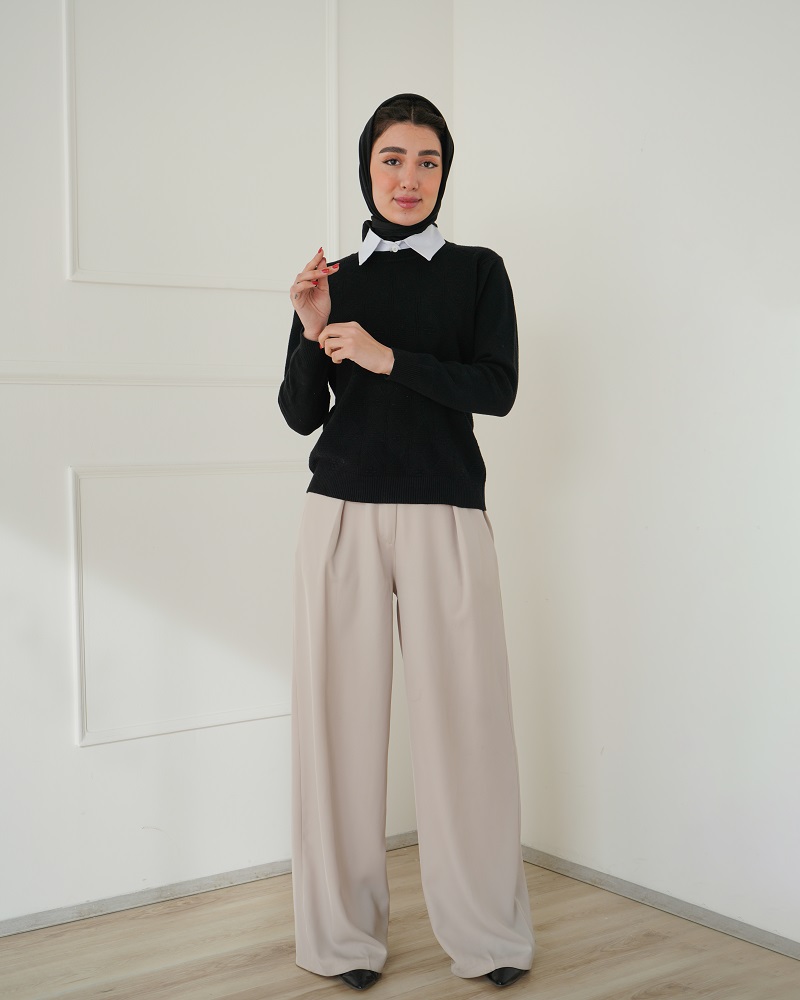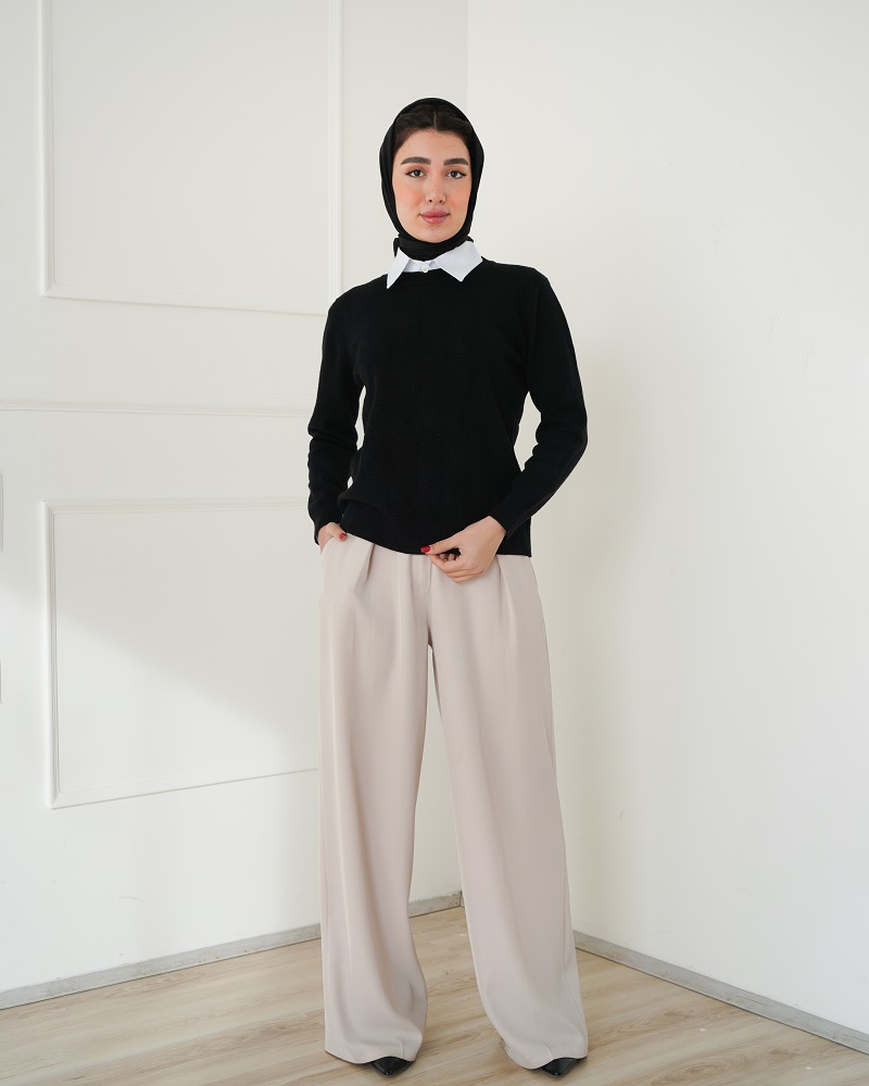- توضیحات محصول: جنس بلوز بافت لطیف می باشد. بلوز یقه گرد و آستین بلند است. این محصول بسیار لطیف همراه با کشسانی بسیار بالا مناسب استفاده روزمره است.