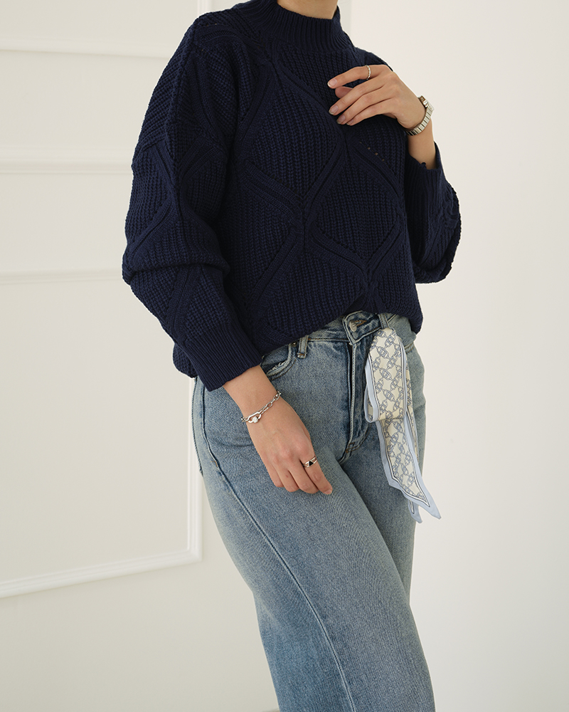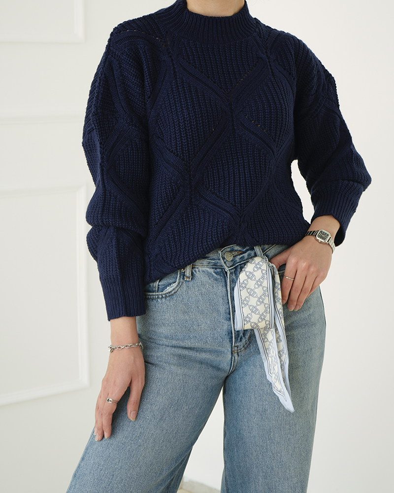 - توضیحات محصول: جنس بلوز، بافت است. بلوز، یقه ایستاده و آستین بلند می باشد. این محصول کشسانی بالایی دارد.