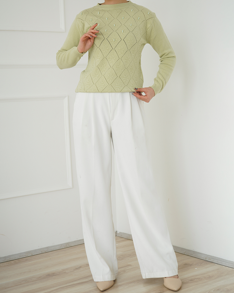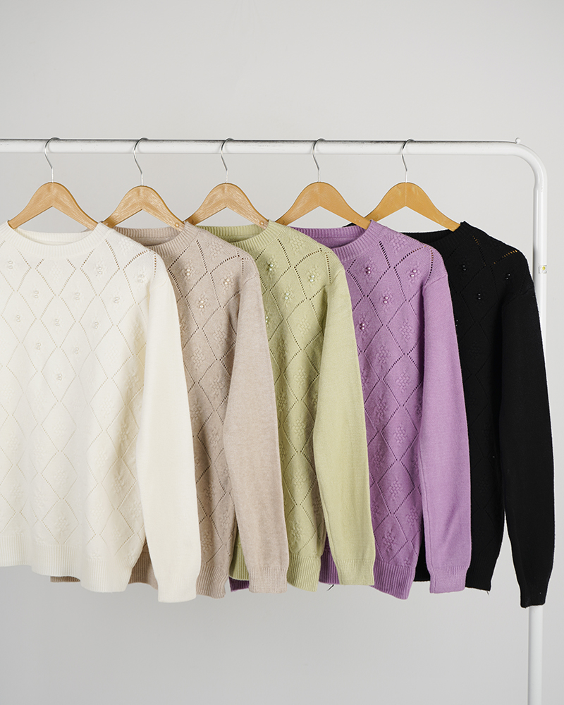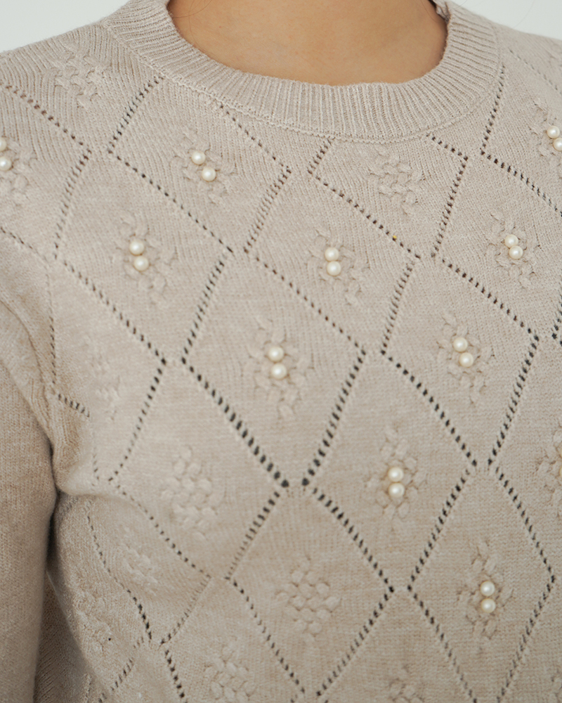 - توضیحات محصول: جنس بلوز بافت می باشد. بلوز یقه گرد و آستین بلند میباشد. مروارید های روی لباس پانچ شده می باشند. بلوز بافت بسیار نرم و لطیف و با کشسانی بالا می باشد.