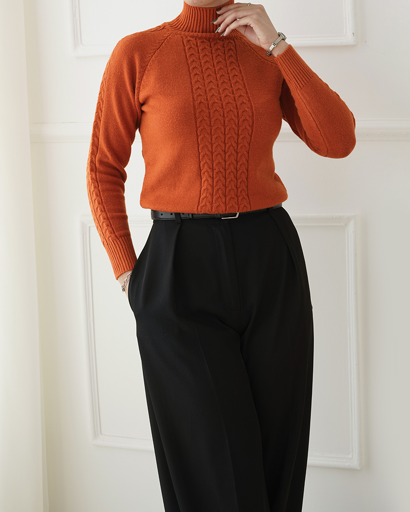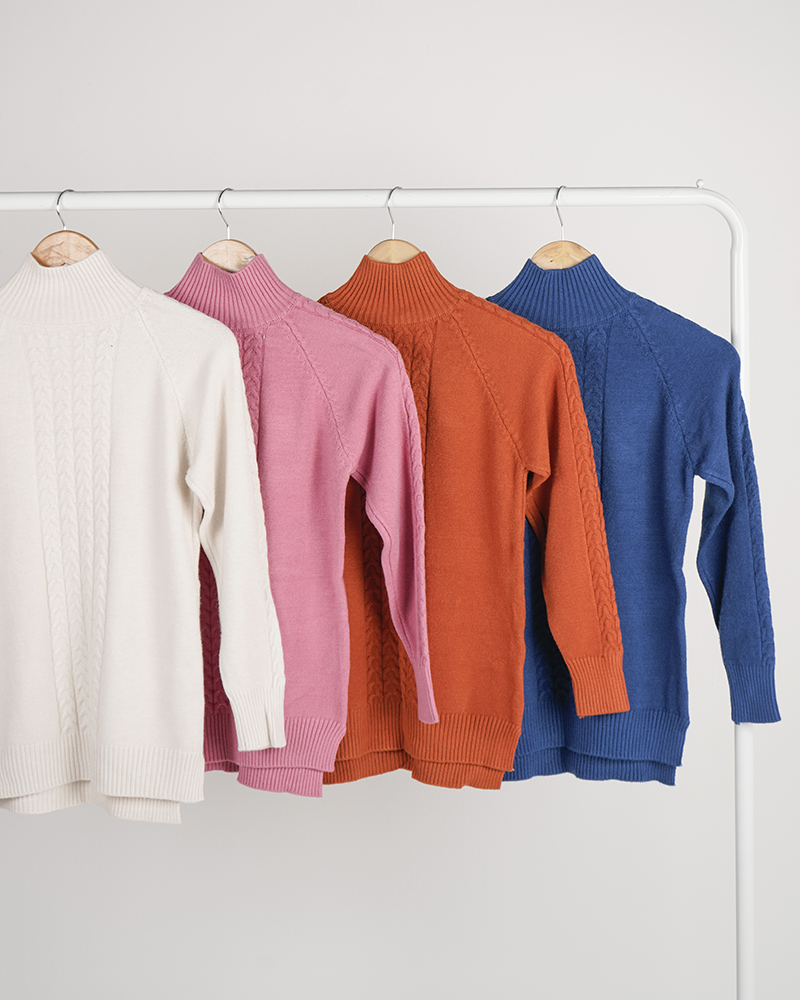 - توضیحات محصول: جنس بلوز بافت لطیف می باشد. بلوز یقه اسکی و آستین بلند است. این محصول لطیف و کشسانی بالایی دارد.
