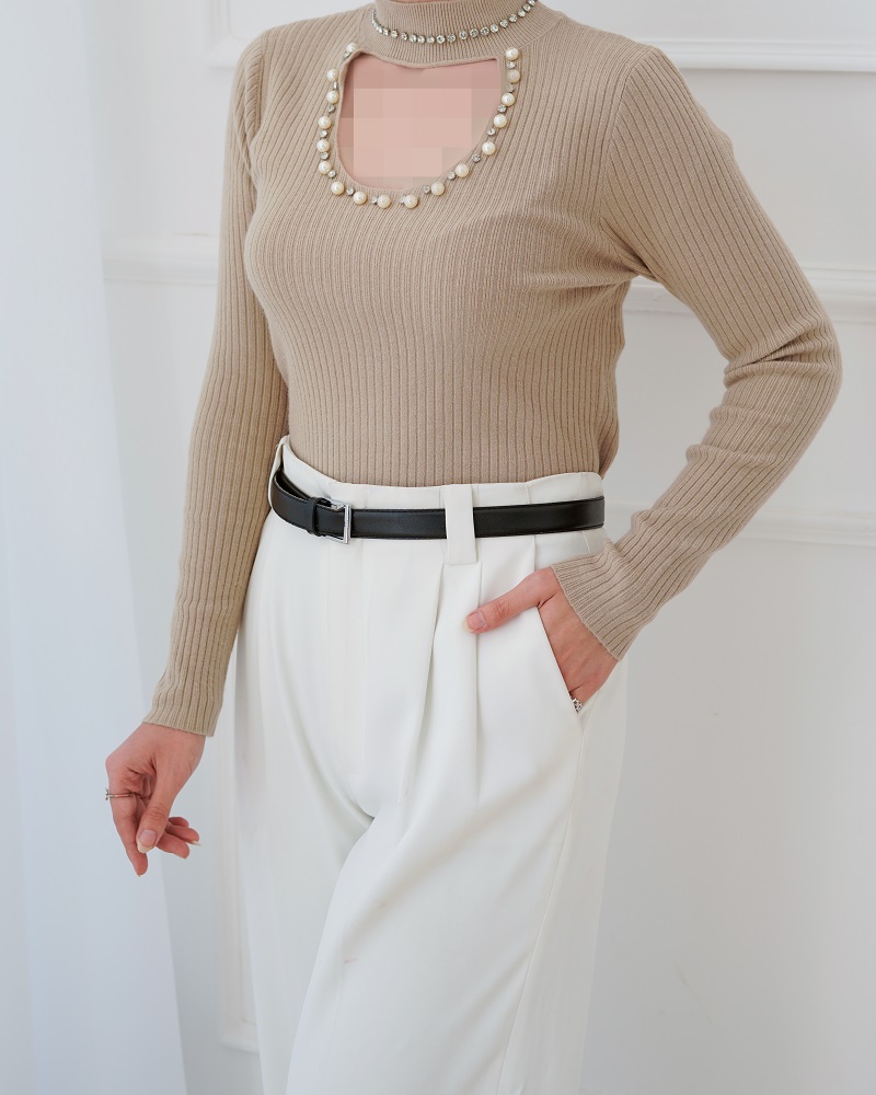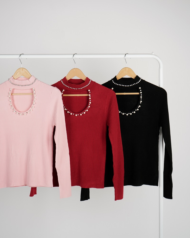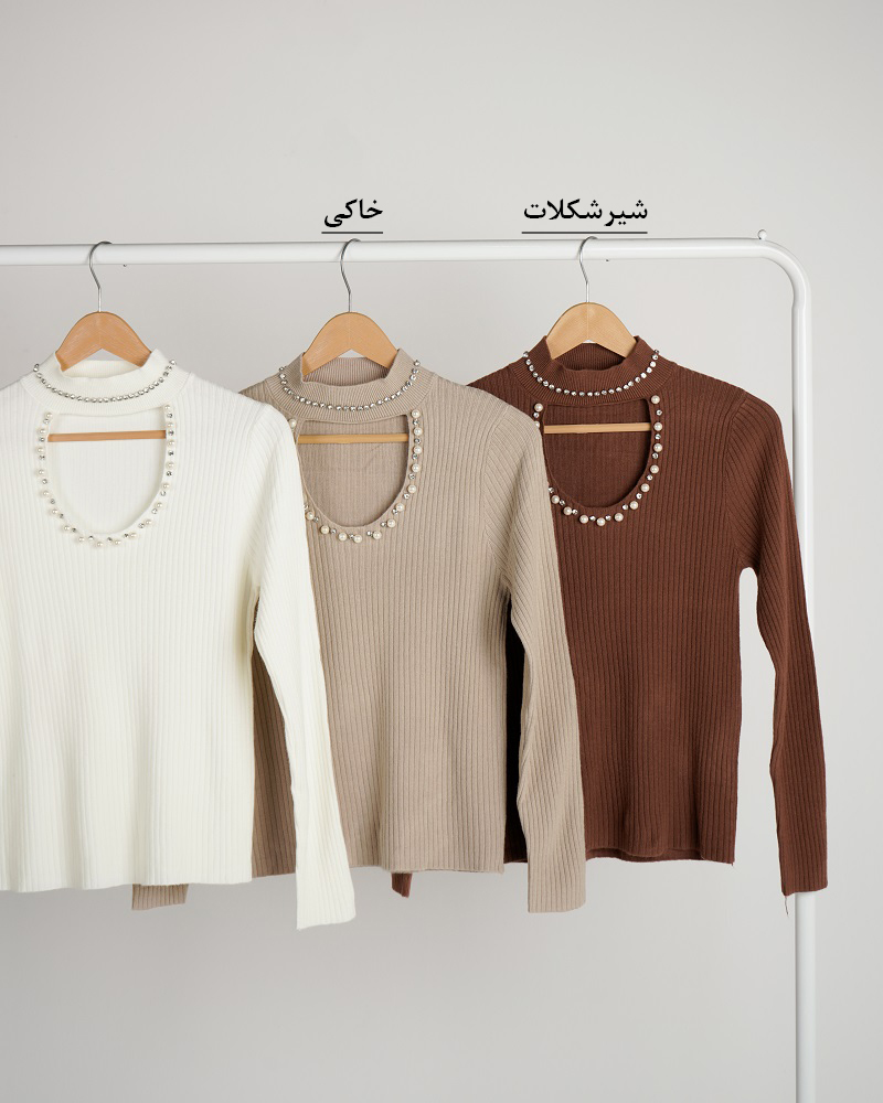 - توضیحات محصول: جنس بلوز، بافت لطیف می باشد. بلوز آستین بلند است. روی بلوز، مروارید و نگین کار شده است. این محصول کشسانی بالایی دارد.