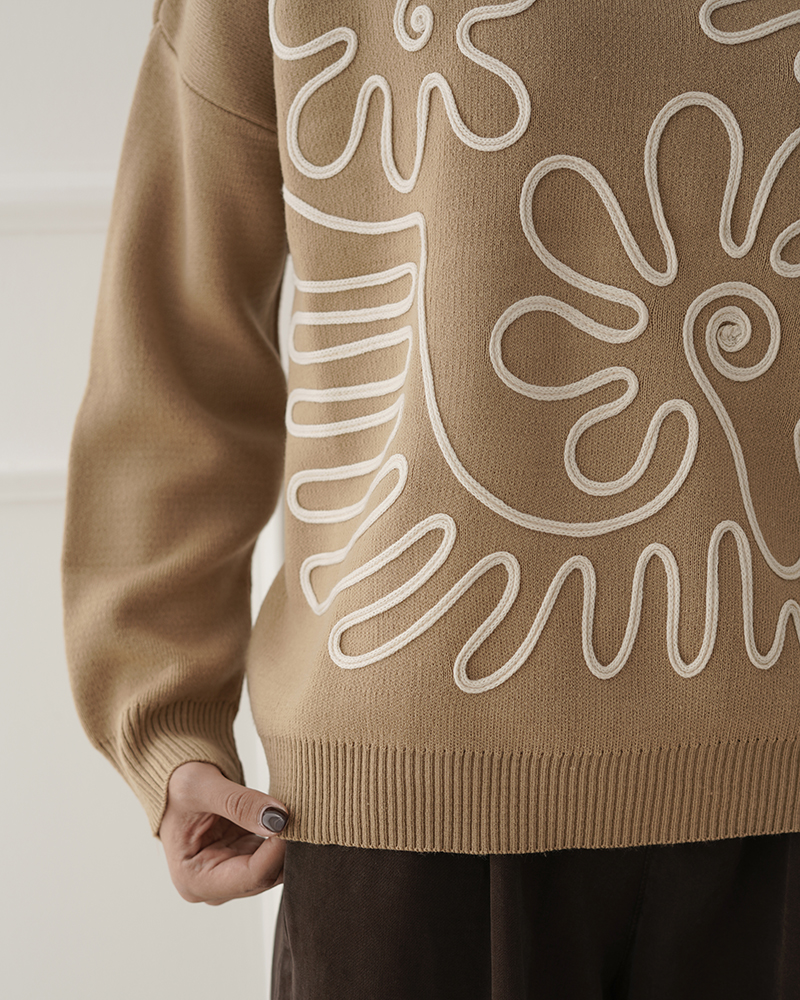- توضیحات محصول: جنس بلوز بافت می باشد. بلوز گرم بالا و یقه گرد می باشد. طرح روی بلوز اپلیکه طنابی می باشد. این محصول بسیار با کیفیت و گرم مناسب استفاده روزمره می باشد.