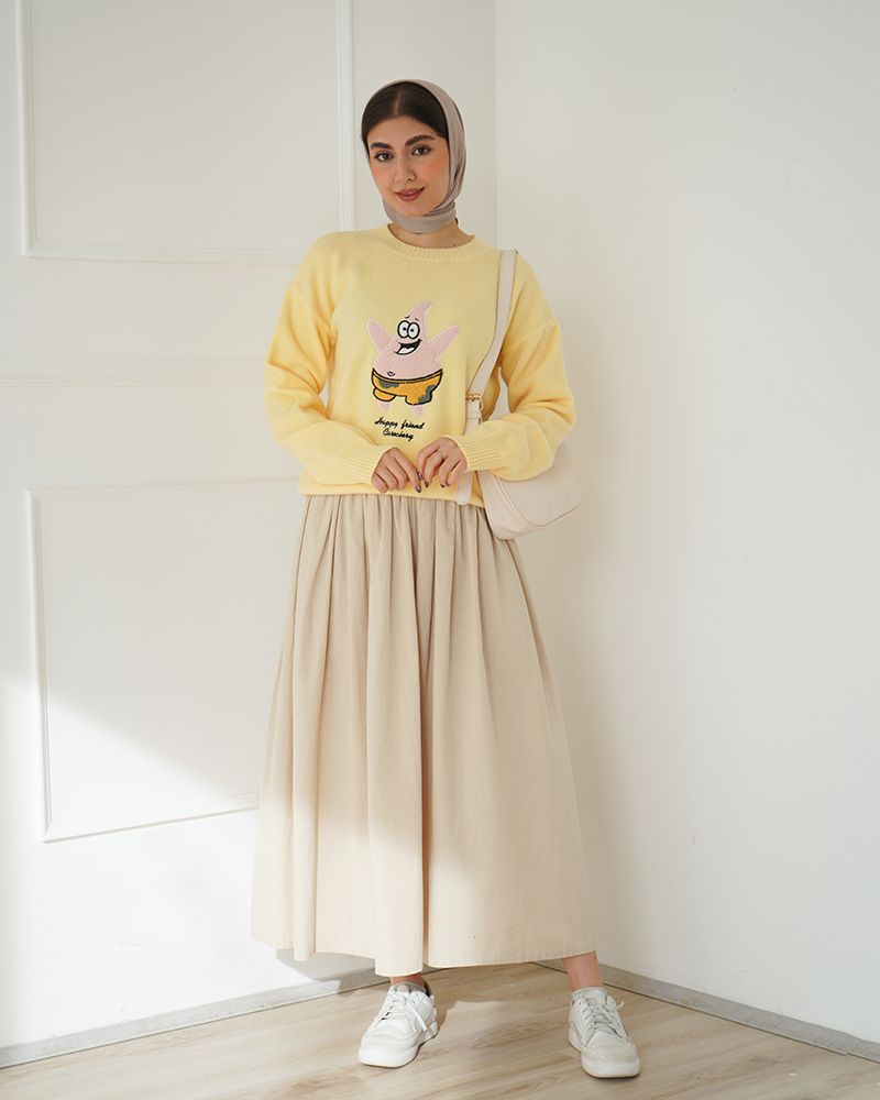 - توضیحات محصول: جنس بلوز بافت لطیف می باشد. بلوز یقه گرد و آستین بلند است. این محصول بسیار لطیف همراه با کشسانی بسیار بالا مناسب استفاده روزمره است.