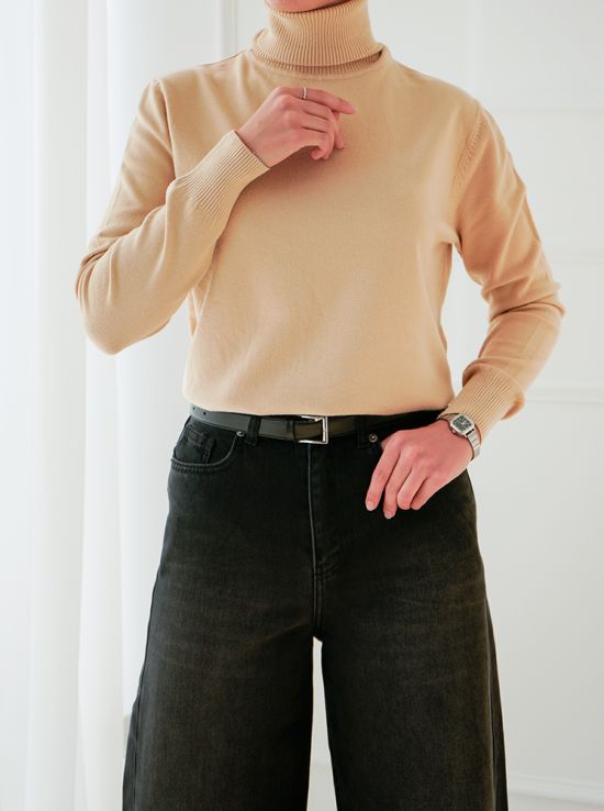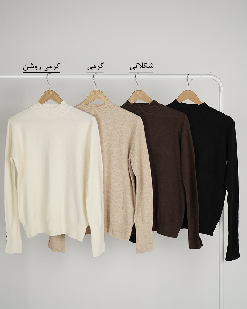 - توضیحات محصول: جنس بلوز، بافت لطیف است. بلوز، یقه اسکی و آستین بلند می باشد. این محصول کشسانی بالایی دارد.