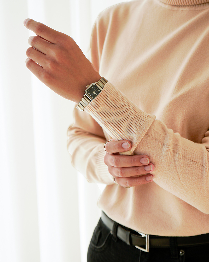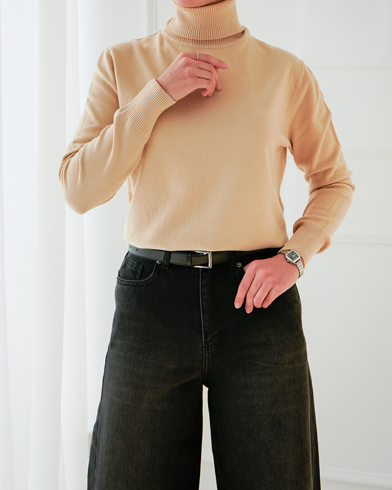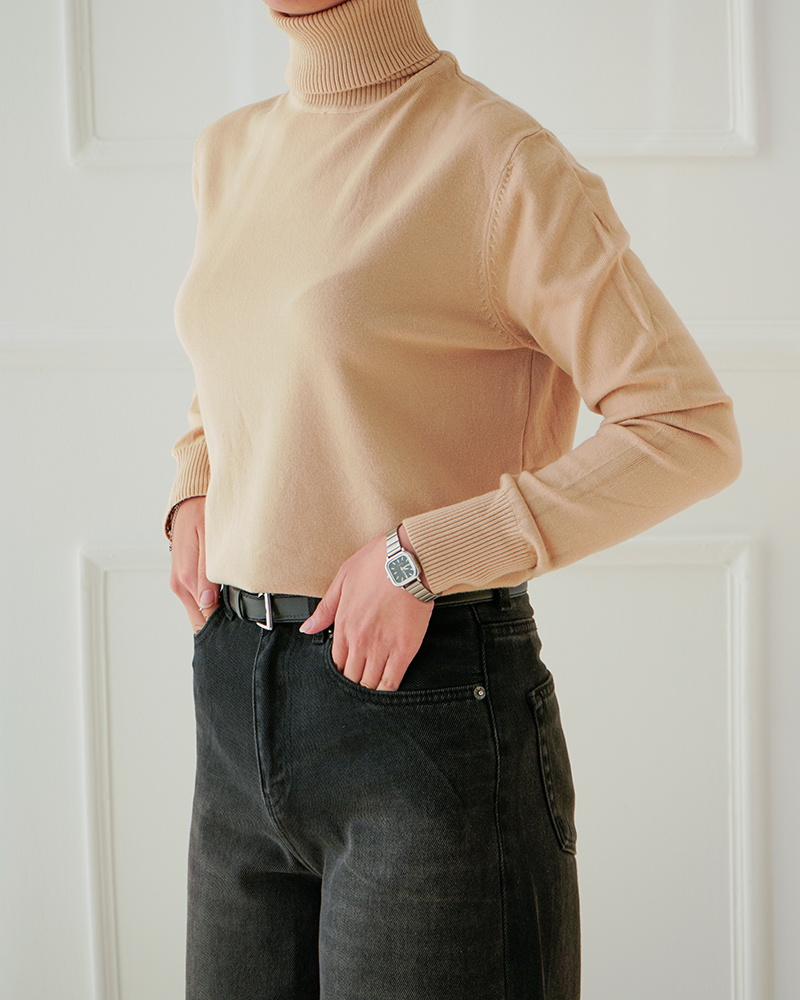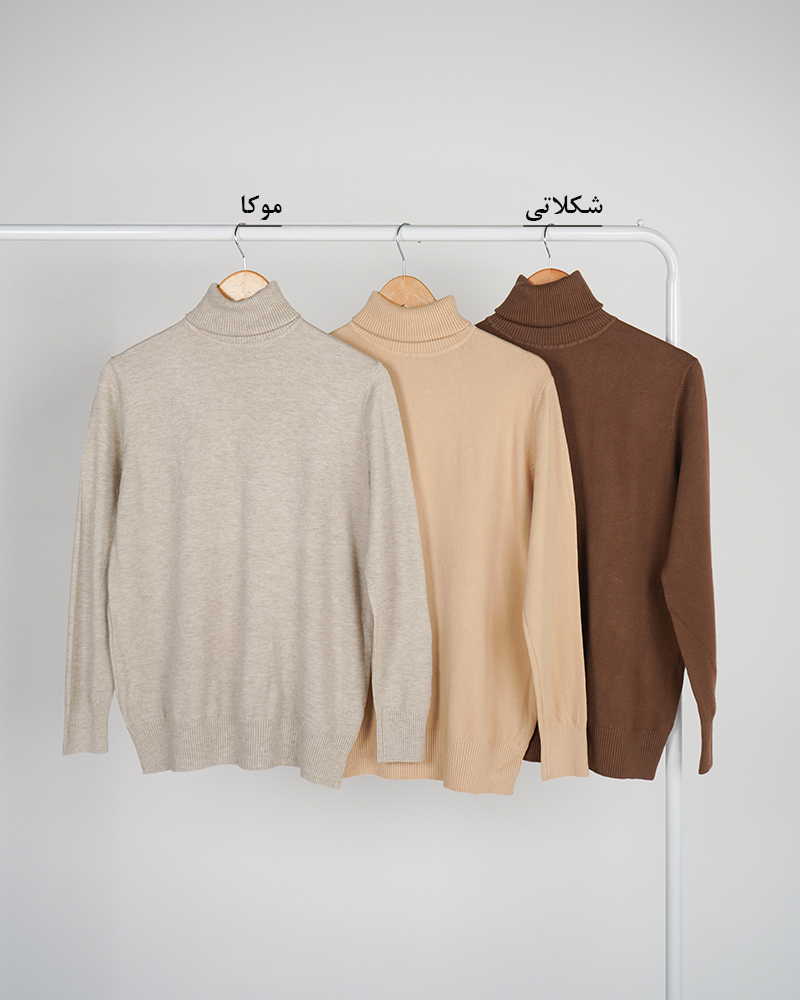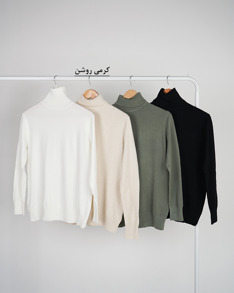 - توضیحات محصول: جنس بلوز، بافت لطیف است. بلوز، یقه اسکی و آستین بلند می باشد. این محصول کشسانی بالایی دارد.