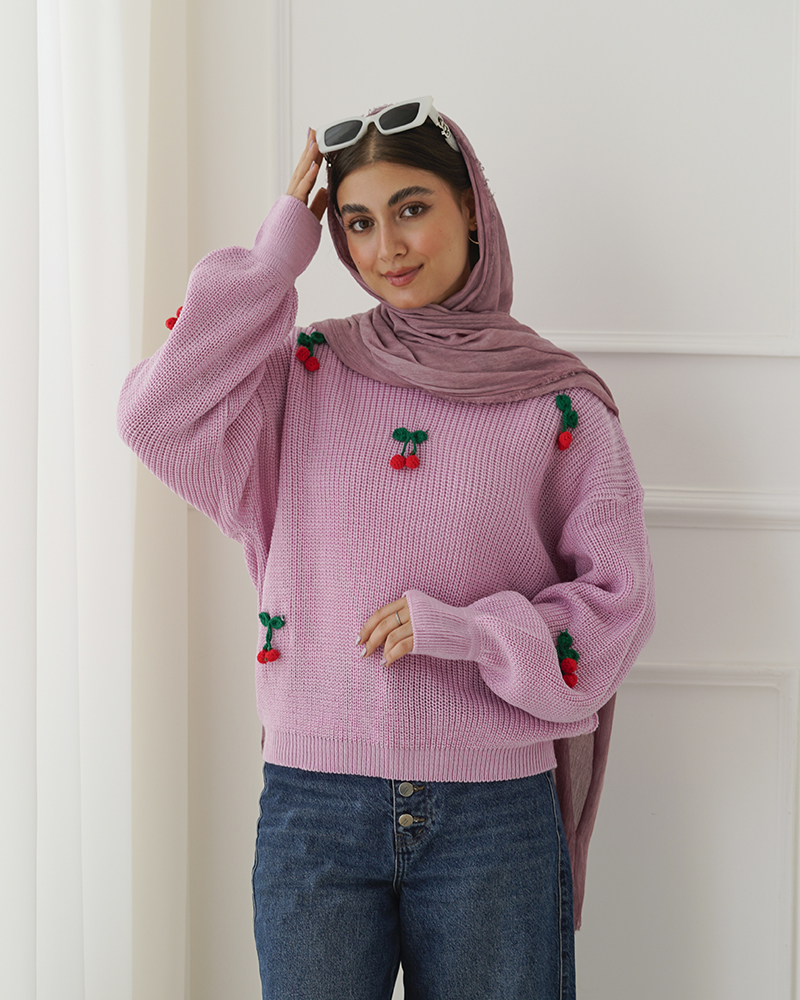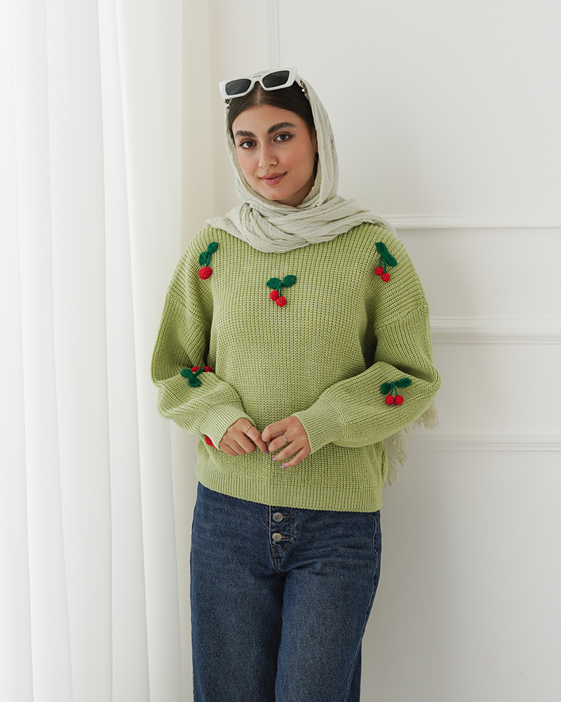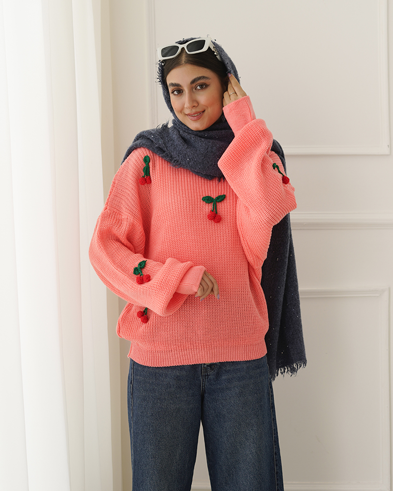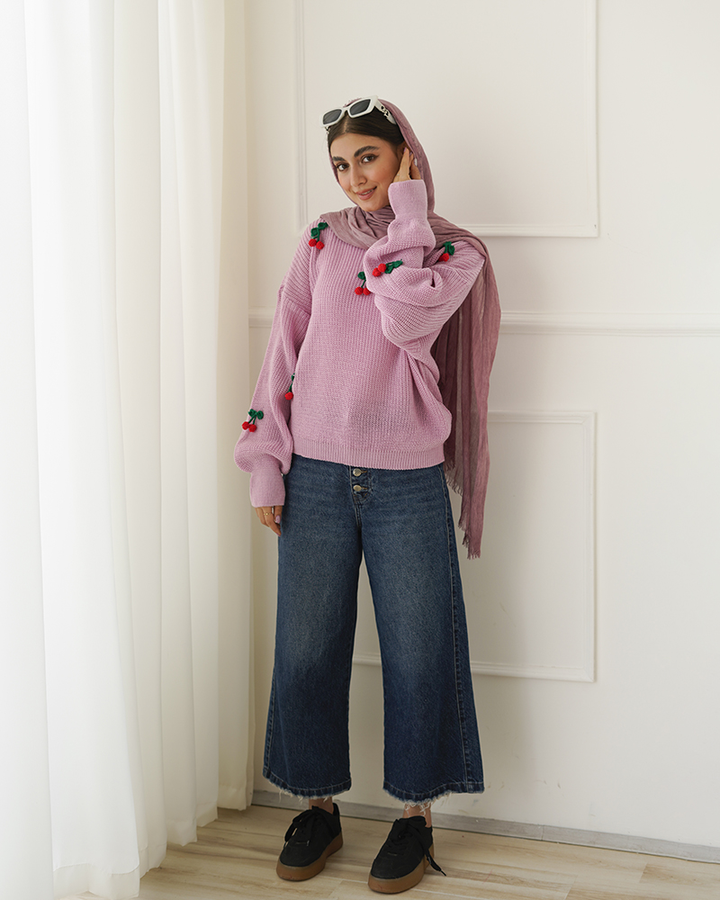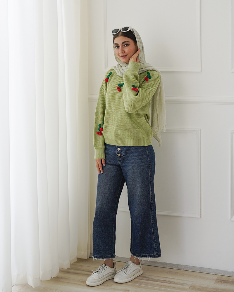 - توضیحات محصول: جنس بلوز بافت می باشد. بلوز یقه گرد و آستین بلند است. گیلاس های روی لباس برجسته می باشد.