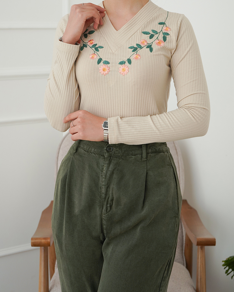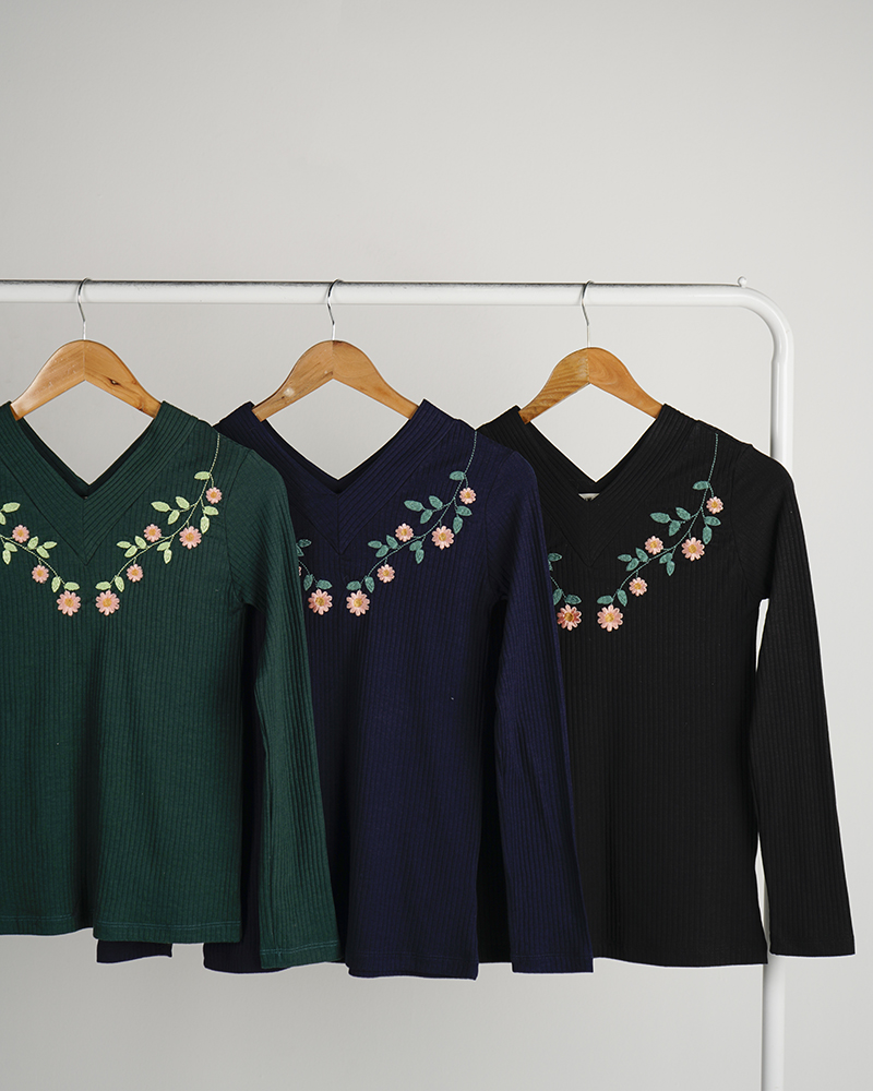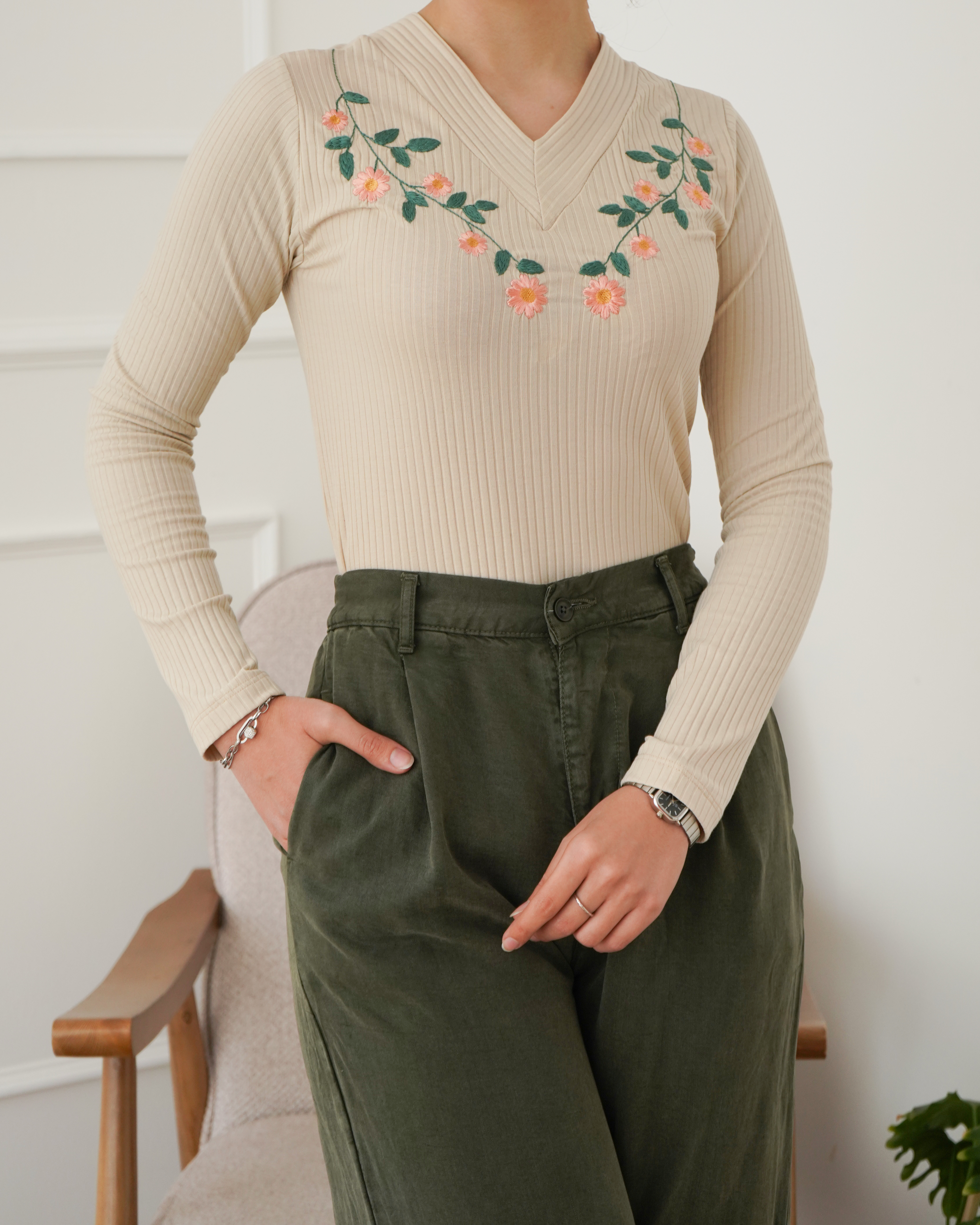- توضیحات محصول: جنس بلوز، نخ پنبه کبریتی است. بلوز، یقه هفت و آستین بلند می باشد. طرح های روی لباس، گلدوزی است. این محصول کشسانی بالایی دارد.