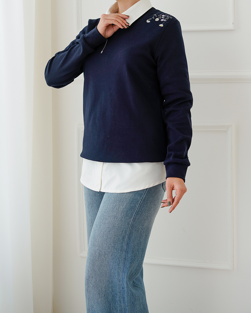 - توضیحات محصول: جنس بلوز نخ پنبه دو رو می باشد. بلوز یقه گرد و آستین بلند است. طرح های روی بلوز گلدوزی است.