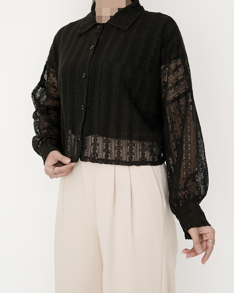 - توضیحات محصول: جنس بلوز گیپور می باشد. بلوز آستین بلند بوده و یقه مردانه می باشد. بلوز جلو دکمه بوده و دارای تک جیب کاربردی می باشد. بلوز بدن نما است.