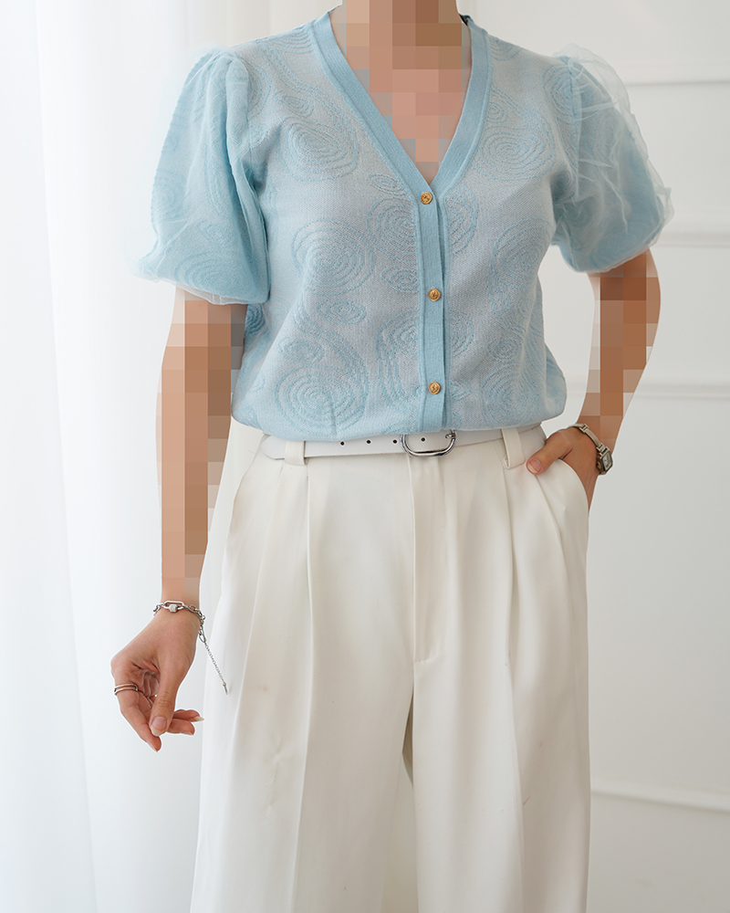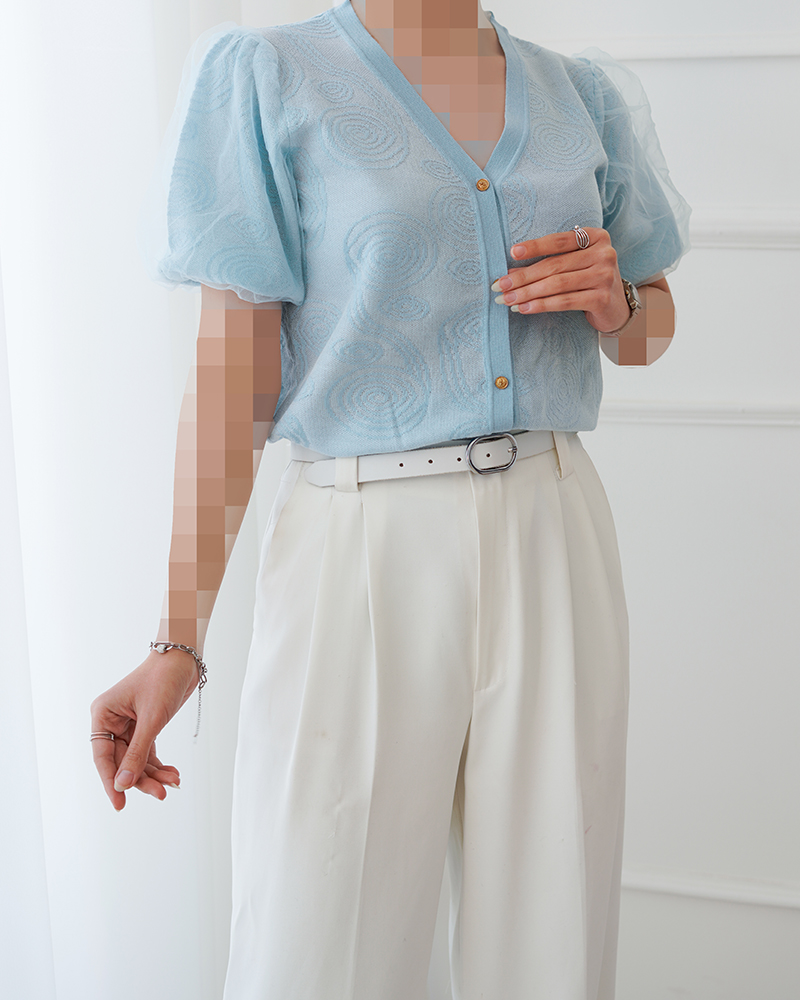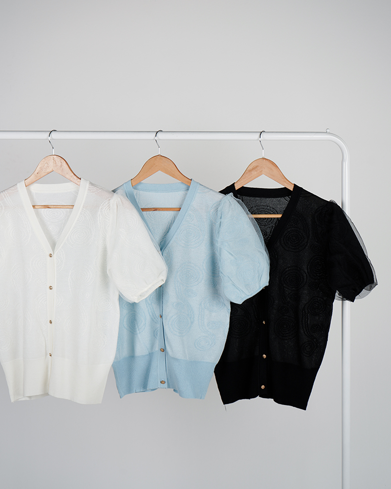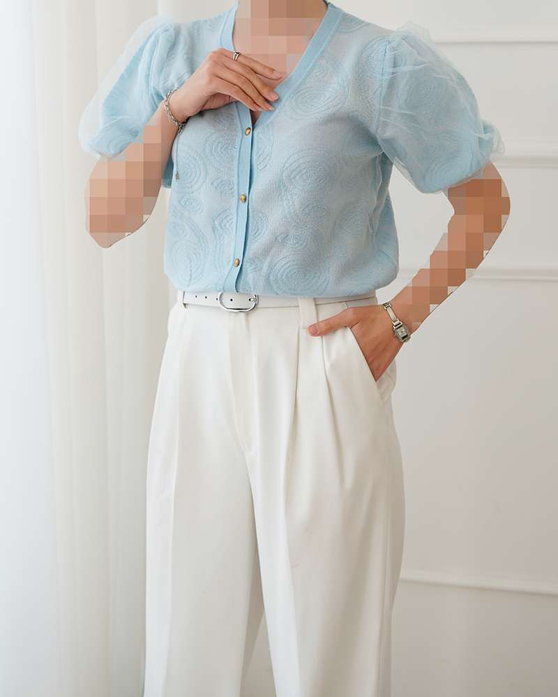 - توضیحات محصول: جنس بلوز، بافت لمه و تور می باشد. دکمه های جلوی لباس کاربردی هستند. این محصول کشسانی بالایی دارد.