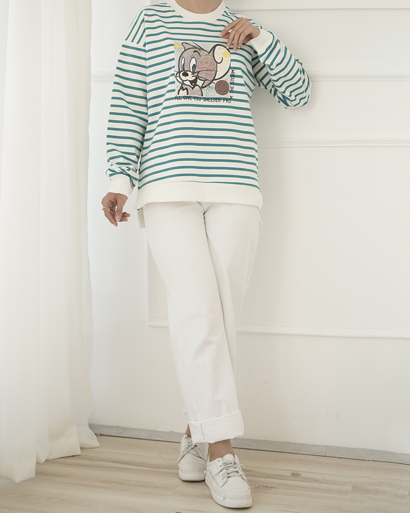 - توضیحات محصول: جنس بلوز، دورس دو نخ و پنبه است. بلوز، یقه گرد و طرح های بلوز، چاپی است. در قسمت های سر آستین و یقه و پایین لباس کشبافت می باشد.