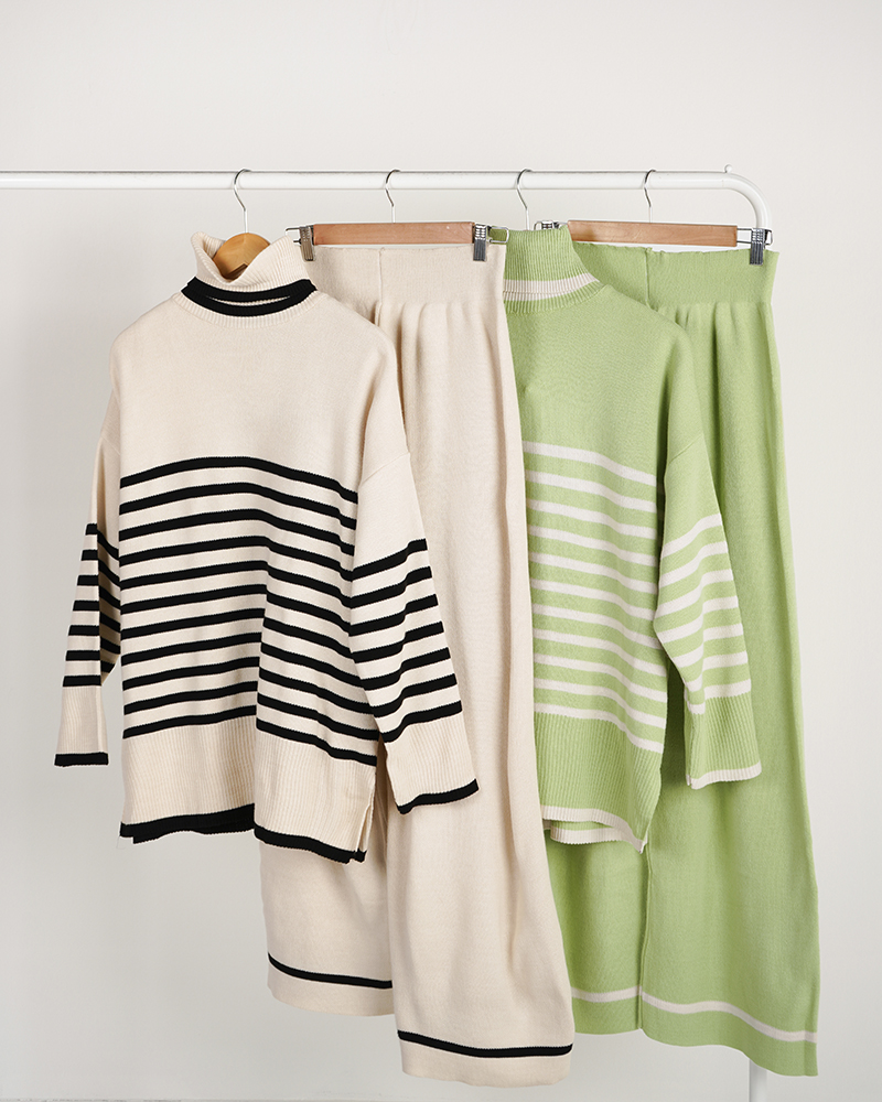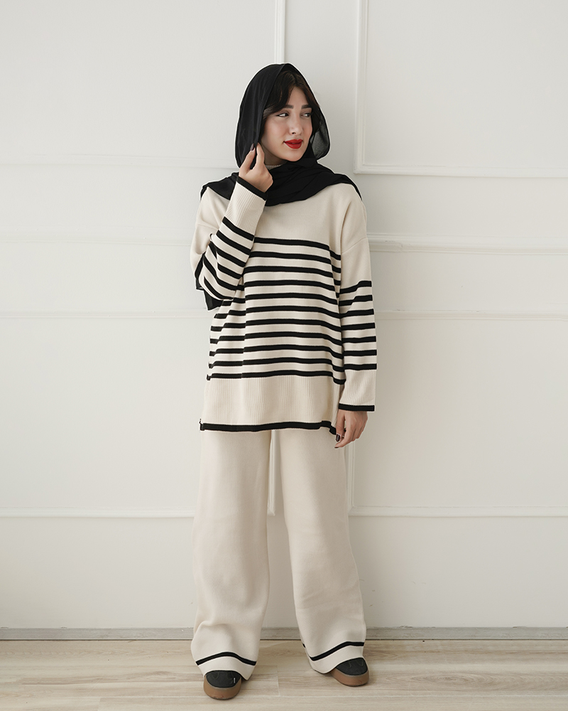- توضیحات محصول: جنس ست، بافت می باشد. کمر شلوار، تماما کشی است. ست، دارای کشسانی، بالایی می باشد.