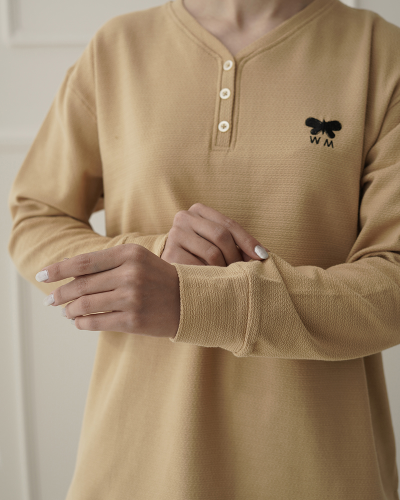 - توضیحات محصول: جنس بلوز بیسکوئیتی می باشد. بلوز یقه گرد می باشد. طرح روی لباس گلدوزی شده است.