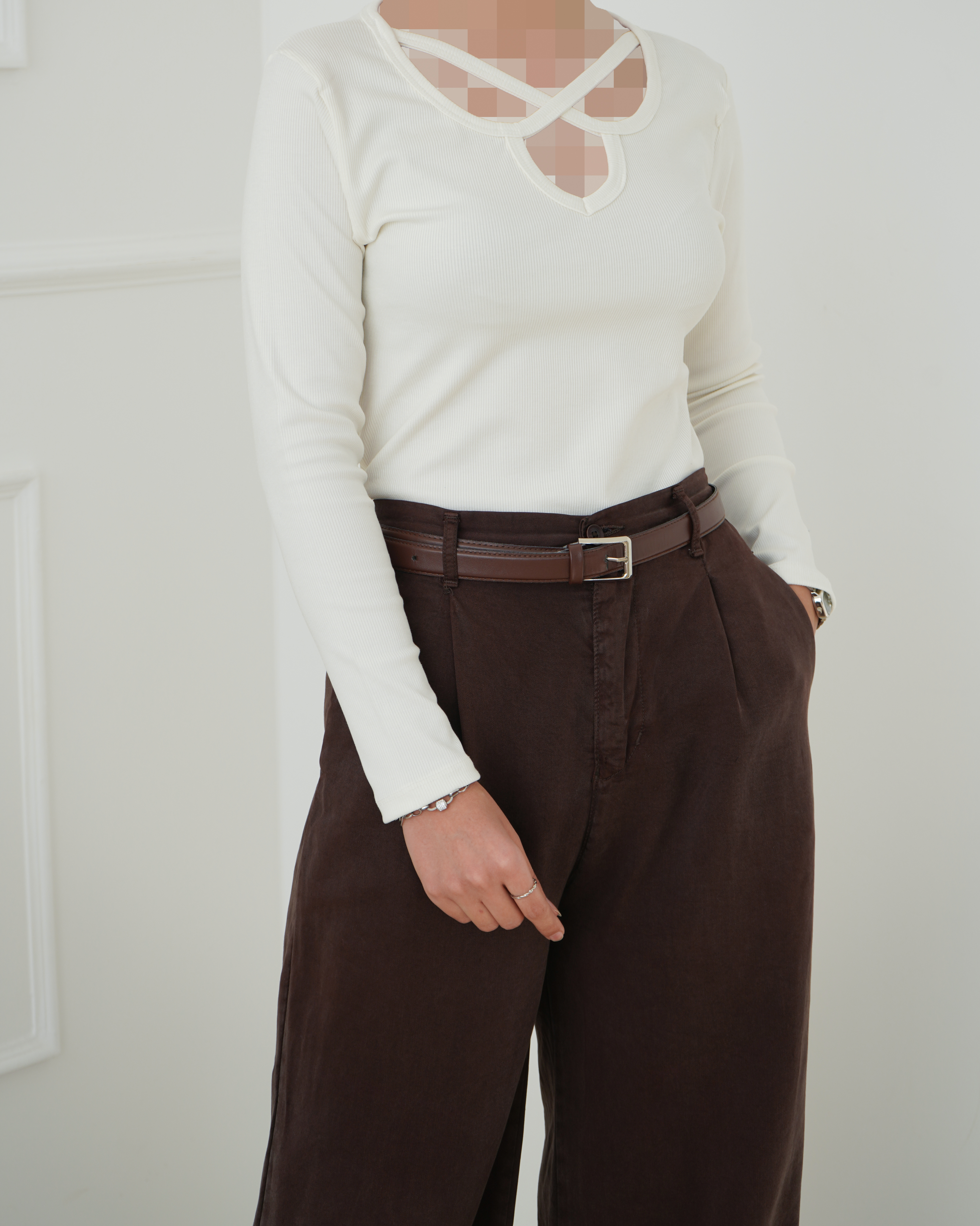 - توضیحات محصول: جنس بلوز نخ و پنبه کبریتی می باشد. بلوز یقه ضربدری و آستین بلند است. این محصول با کشسانی بسیار بالا نرم و لطیف مناسب استفاده روزمره است.رنگ نسکافه ای این محصول آستین فینگر دار می باشد.