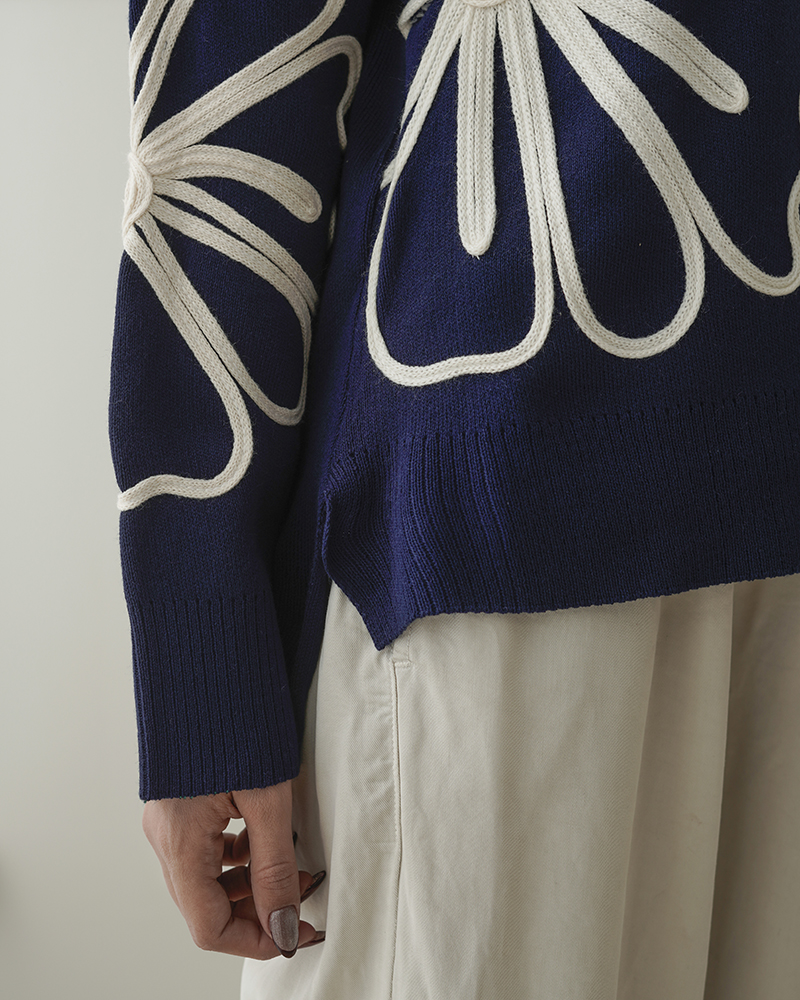 - توضیحات محصول: جنس بلوز بافت می باشد. بلوز گرم بالا و یقه گرد می باشد. طرح روی بلوز اپلیکه طنابی می باشد. این محصول بسیار با کیفیت و گرم مناسب استفاده روزمره می باشد.