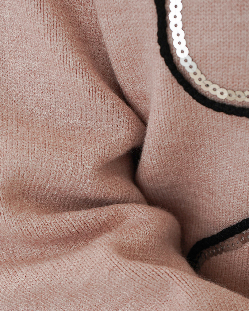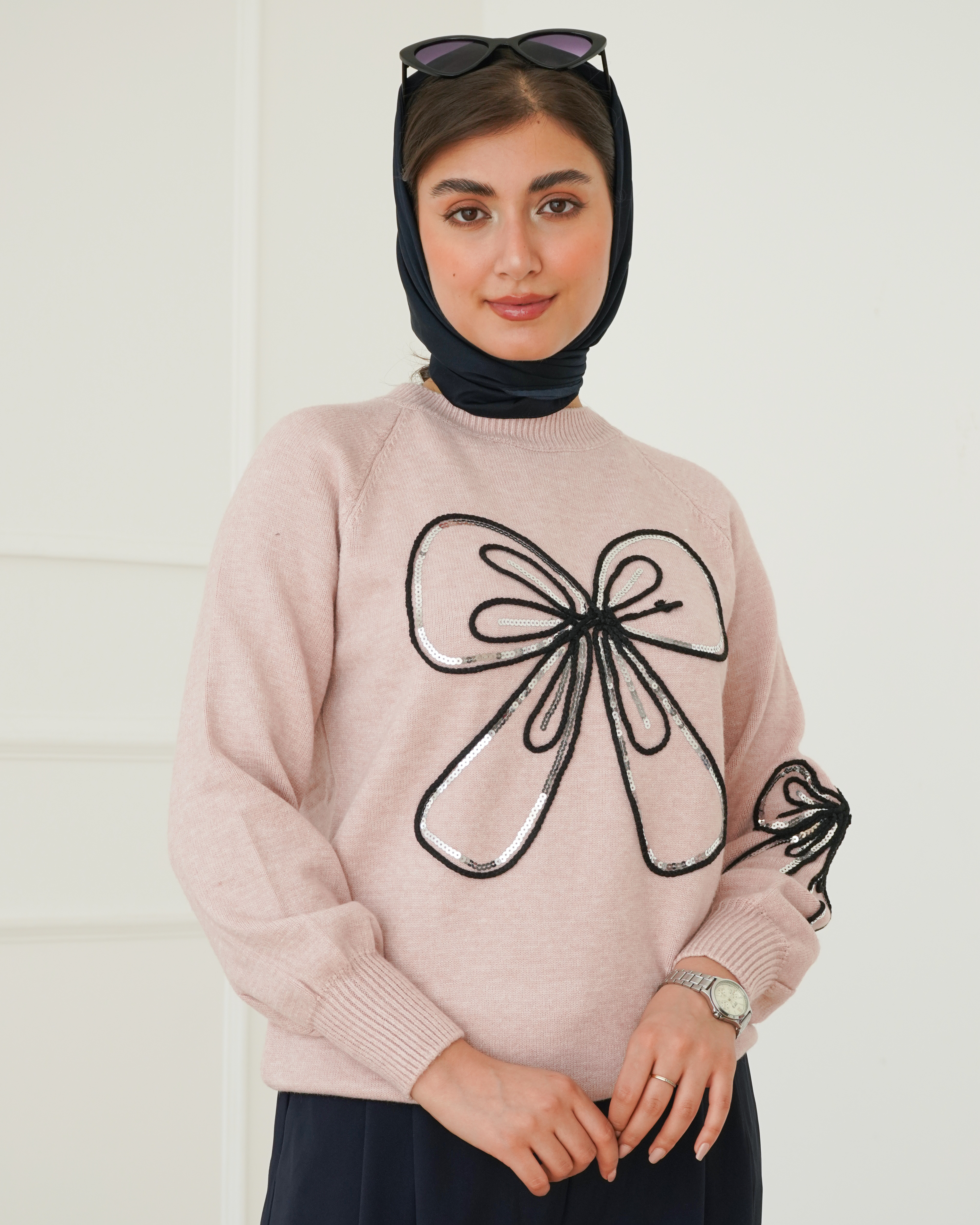 - توضیحات محصول: جنس بلوز، بافت لطبف گرم بالا است. بلوز، یقه گرد و آستین بلند می باشد. طرح های روی بلوز، اپلیکه طنابی و پولکی است. این محصول کشسانی بالایی دارد.