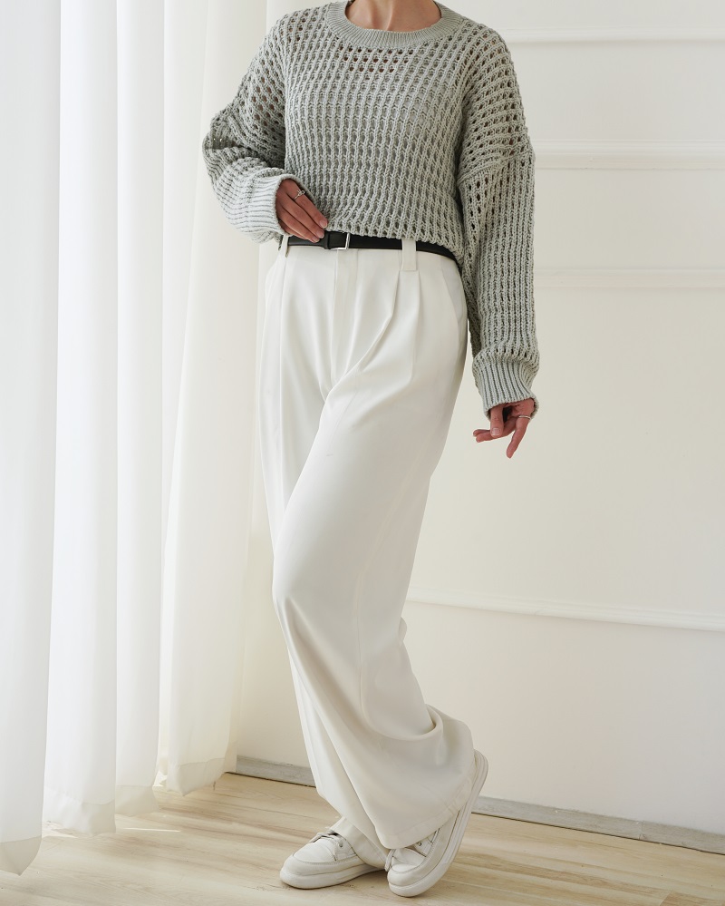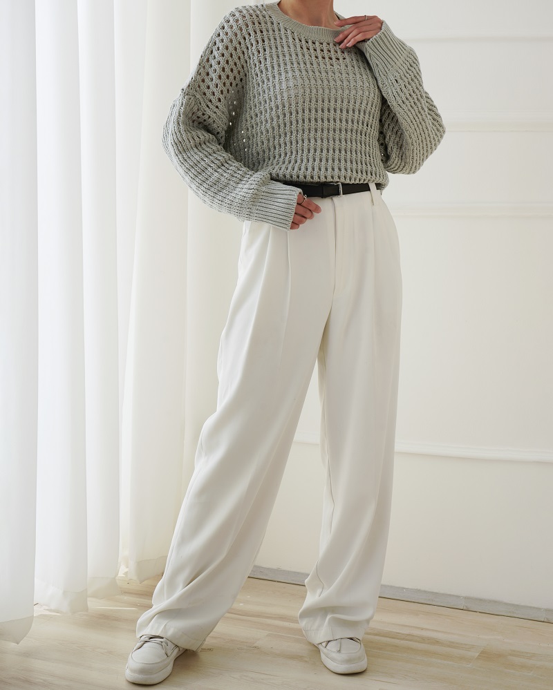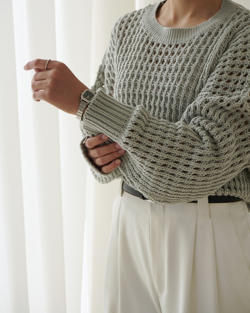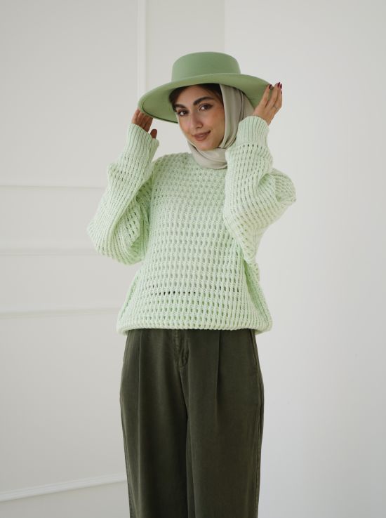 - توضیحات محصول: جنس بلوز بافت حصیری می باشد. بلوز یقه گرد و آستین بلند است. این محصول کشسانی بالایی دارد.