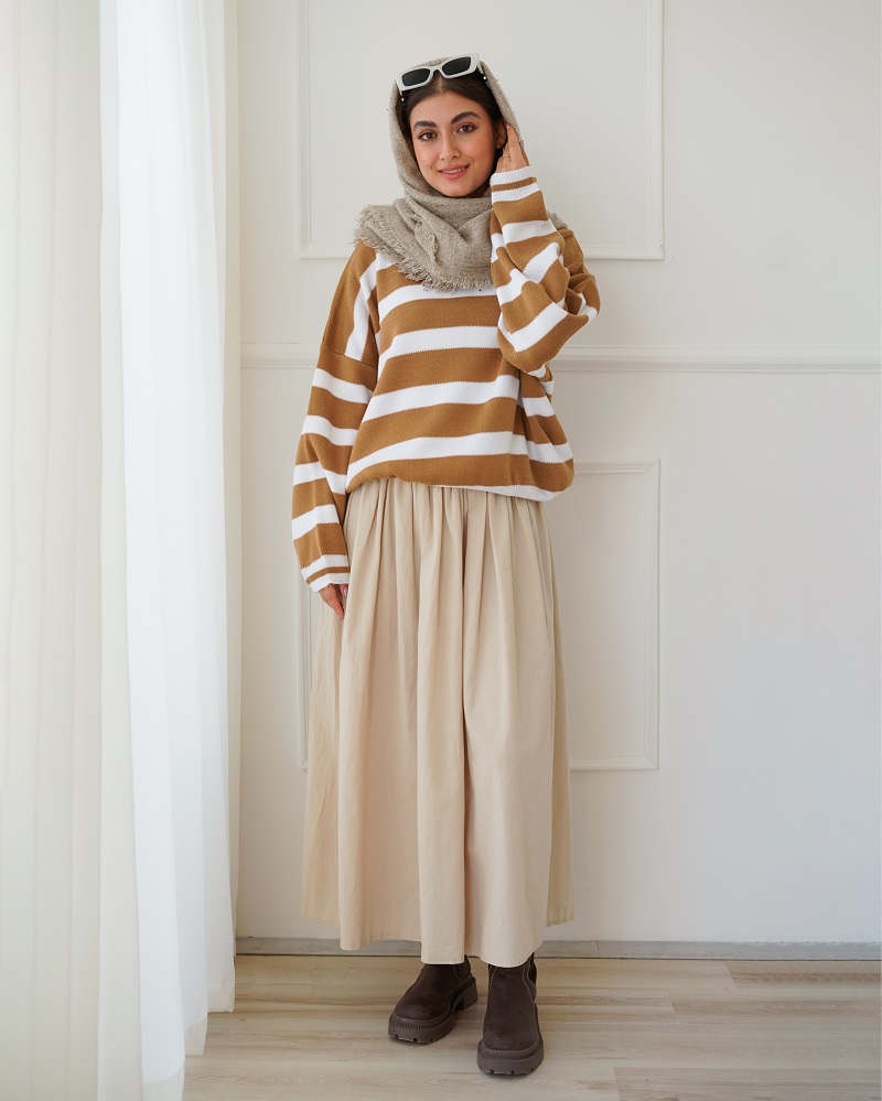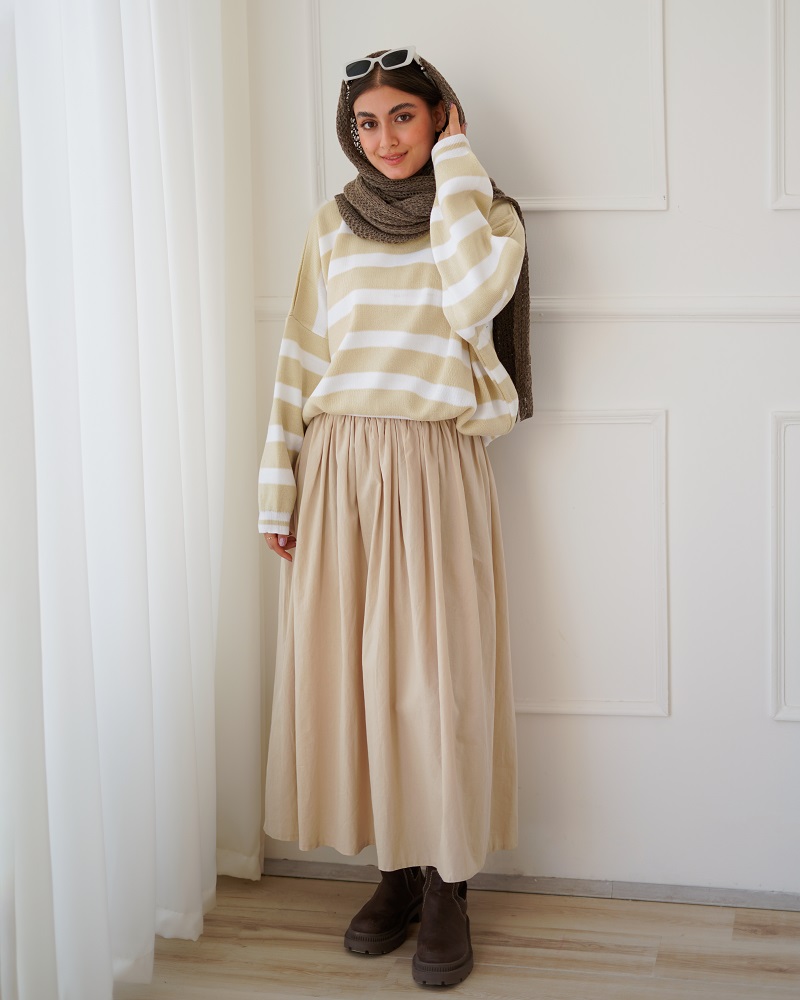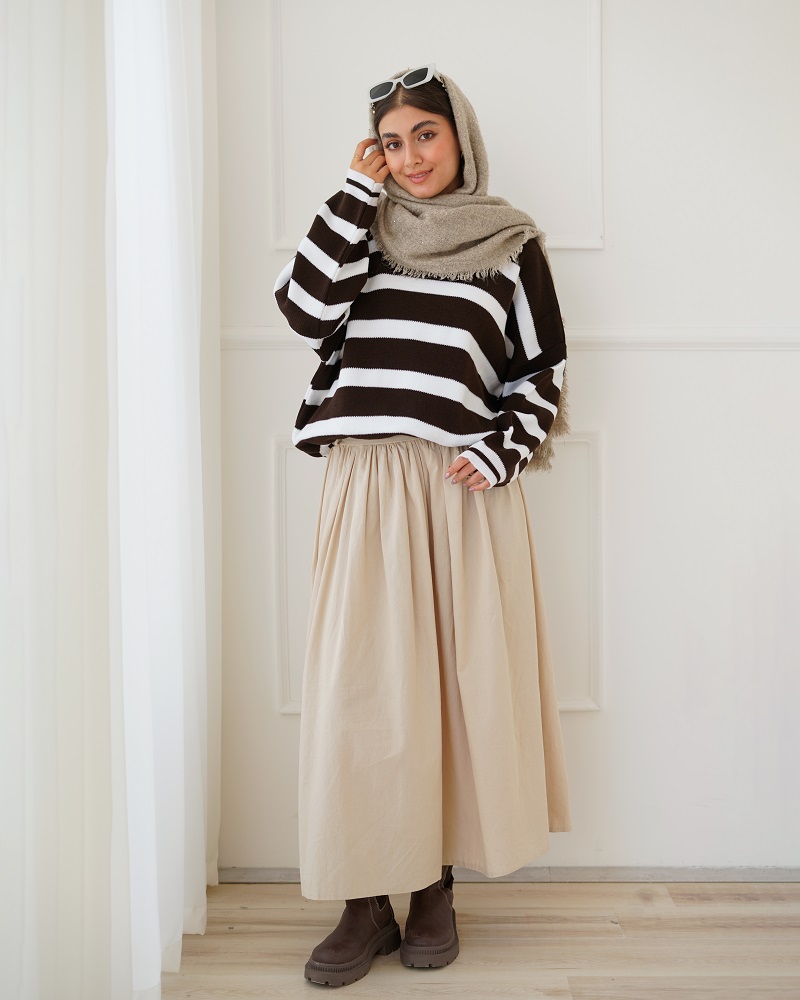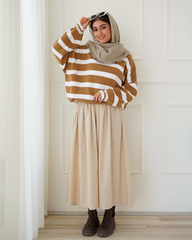 - توضیحات محصول: جنس بلوز بافت می باشد. بلوز یقه گرد و آستین بلند است.