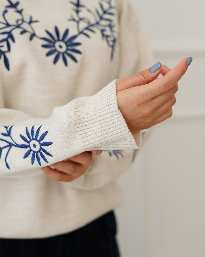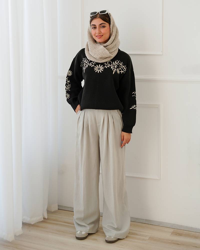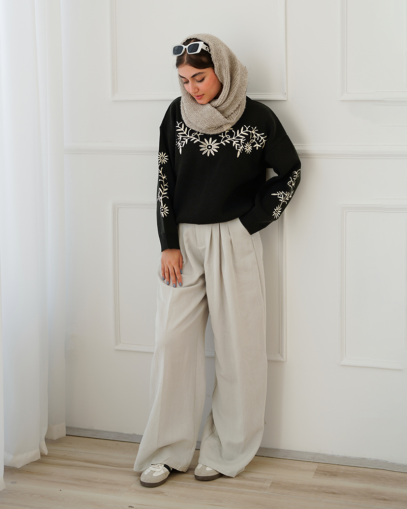 - توضیحات محصول: جنس بلوز بافت لطیف می باشد. بلوز یقه گرد و آستین بلند است. این محصول بسیار لطیف همراه با کشسانی بالا مناسب استفاده روزمره می باشد.طرح های روی بلوز گلدوزی شده می باشد.