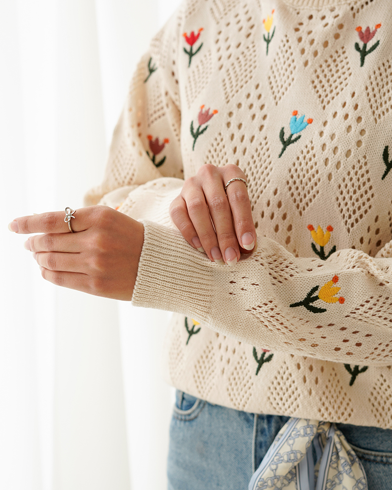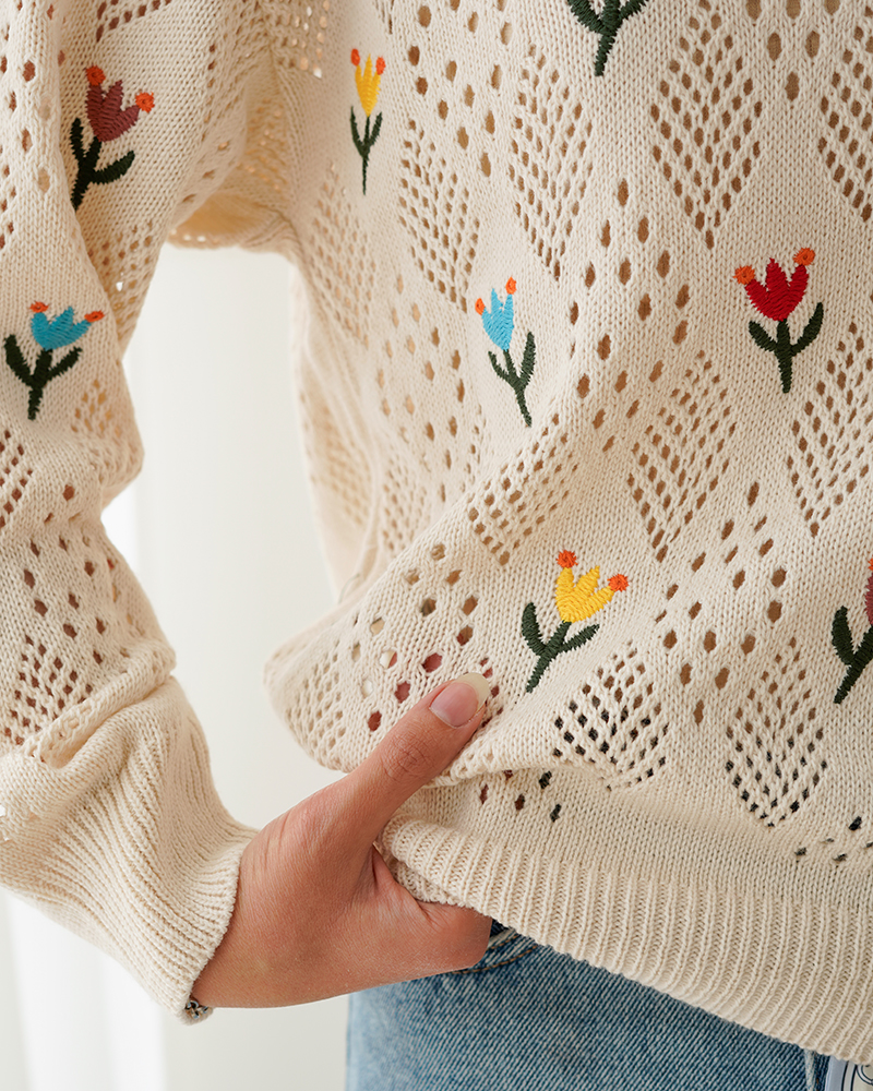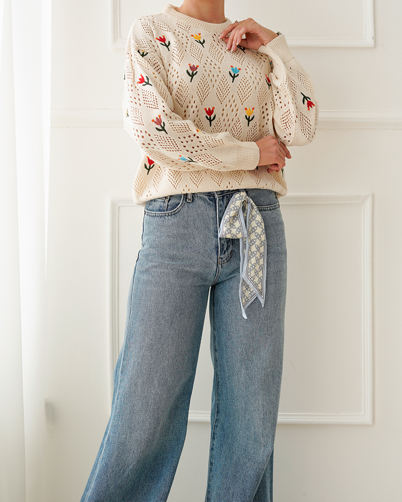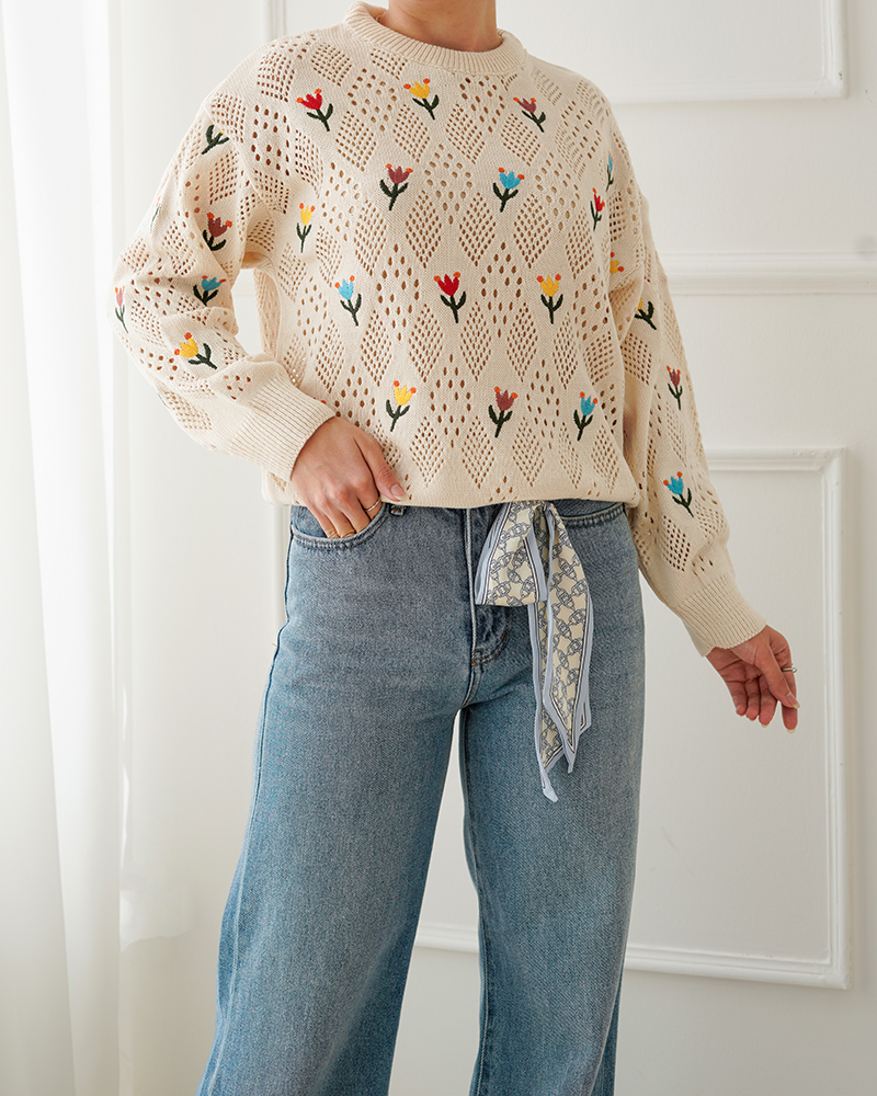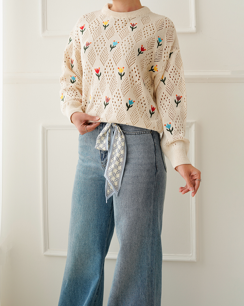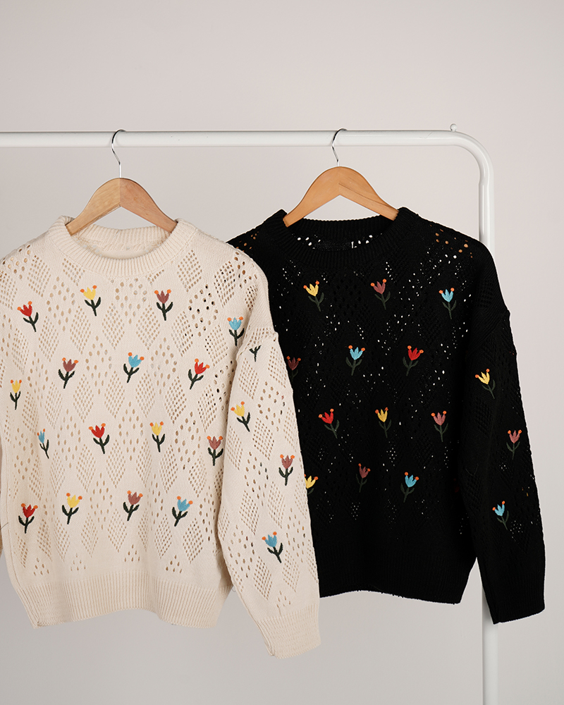 - توضیحات محصول: جنس بلوز بافت با کیفیت می باشد. این محصول یقه گرد و آستین بلند می باشد. طرح های روی این بلوز گلدوزی شده بوده و بلوز بدن نما می باشد.