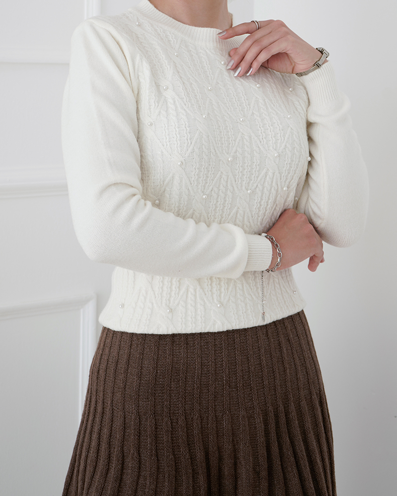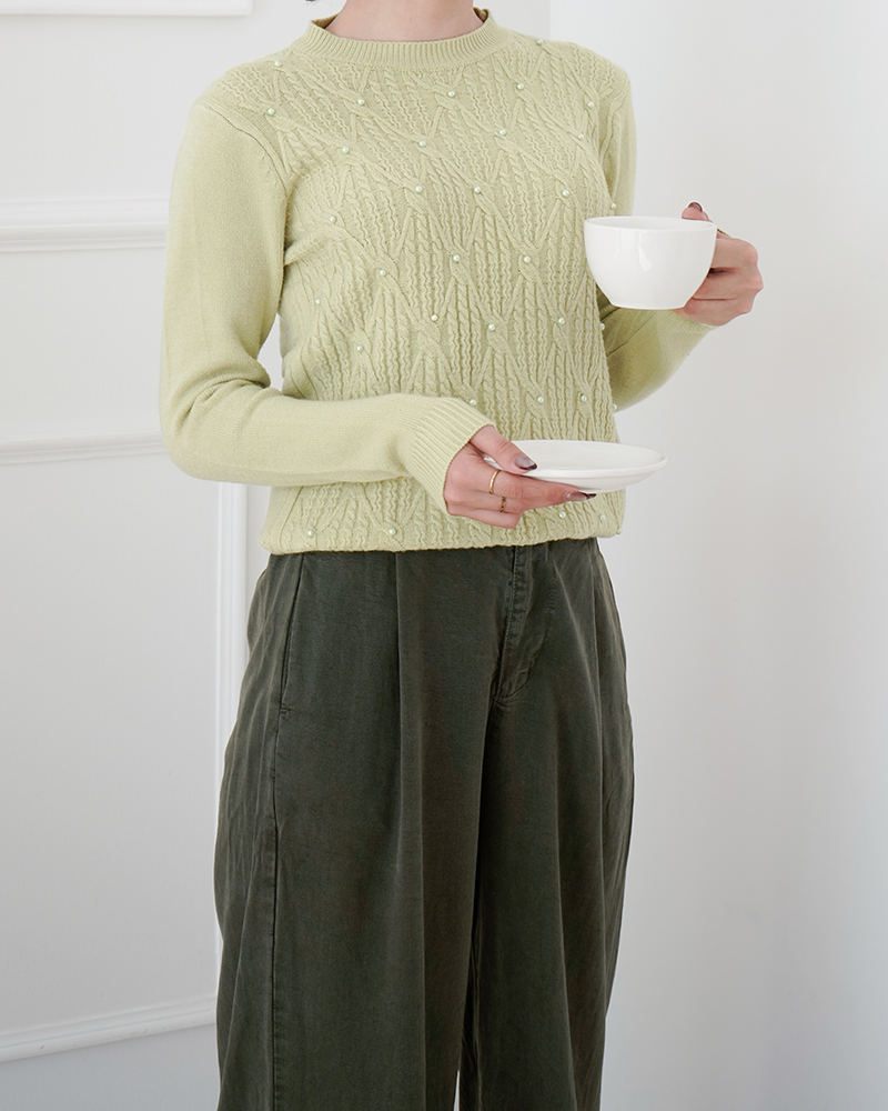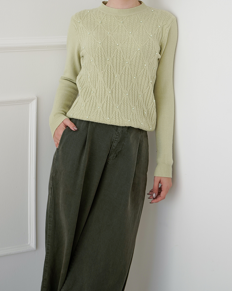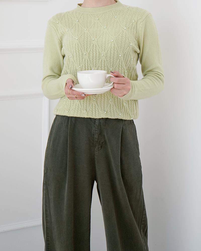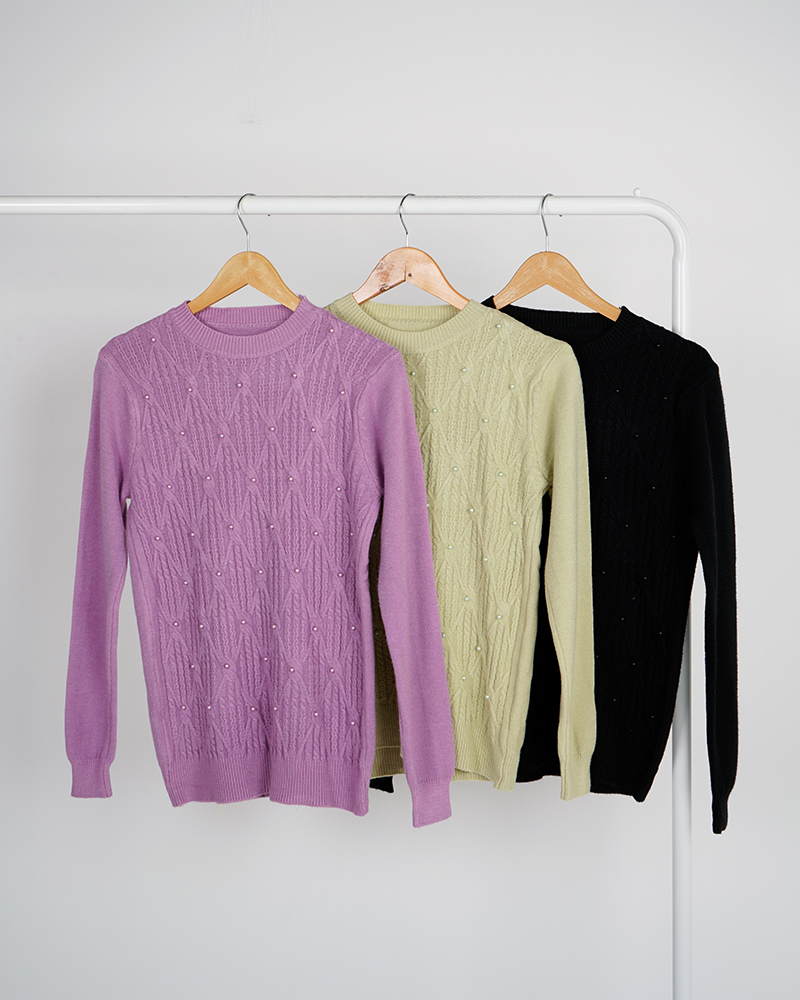 - توضیحات محصول: جنس بلوز، بافت لطیف است. روی بلوز، مروارید کار شده است. بلوز، کشسانی بالایی دارد.