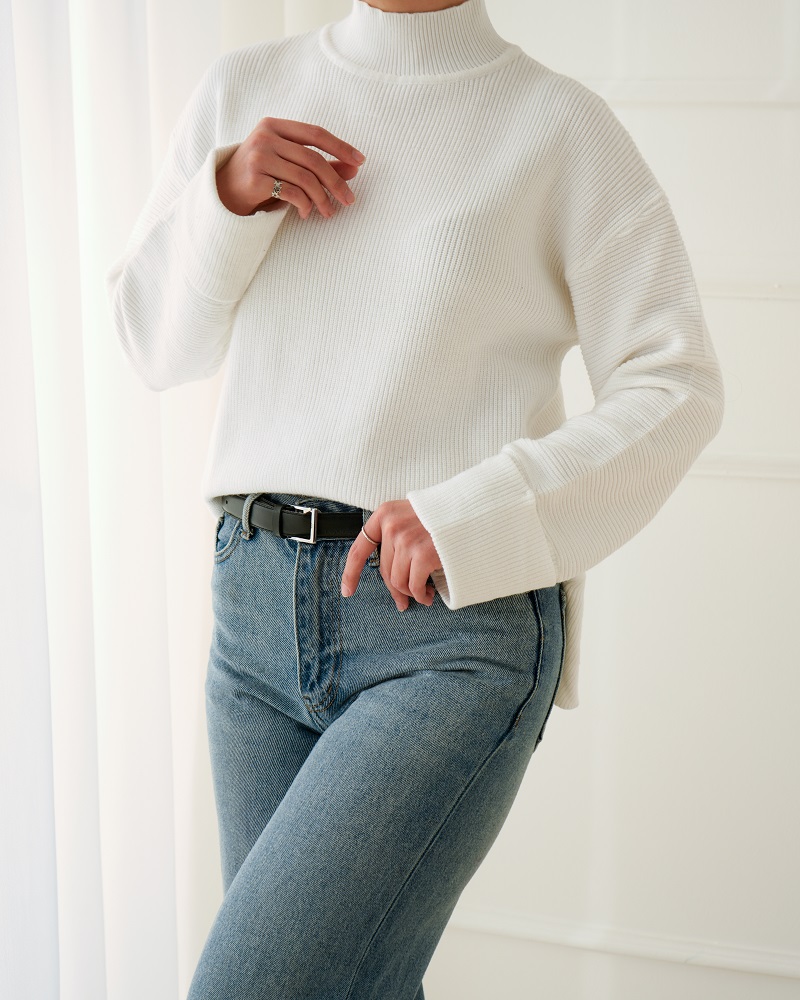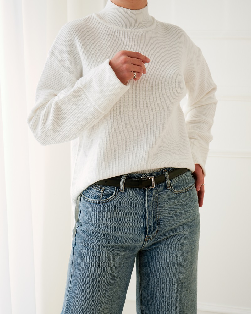 - توضیحات محصول: جنس بلوز، بافت کبریتی است. بلوز، یقه اسکی و آستین بلند می باشد. این محصول کشسانی بالایی دارد.