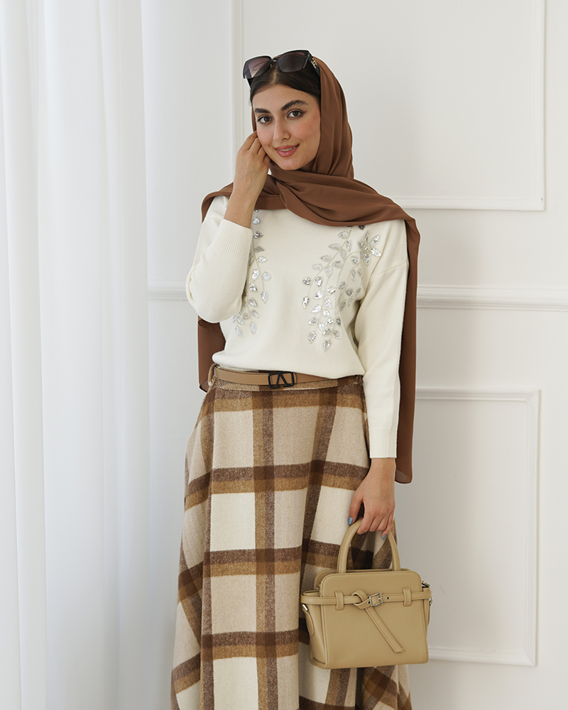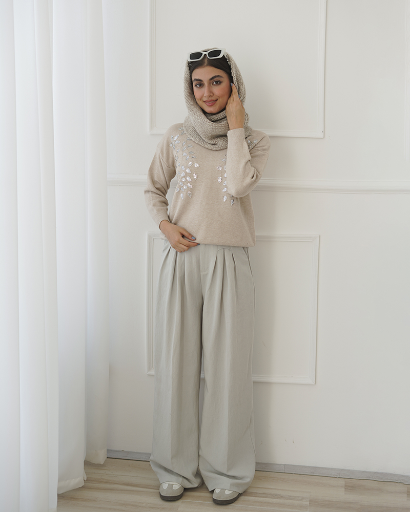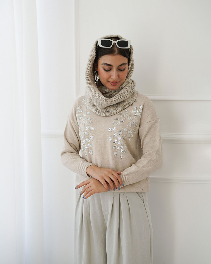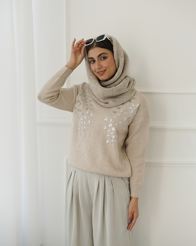 - توضیحات محصول: جنس بلوز بافت لطیف می باشد. بلوز یقه گرد و آستین بلند می باشد. طرح های روی این محصول منجوق دوزی شده هستند. بلوز بسیار با کیفیت و لطیف مناسب استفاده روزمره می باشد.