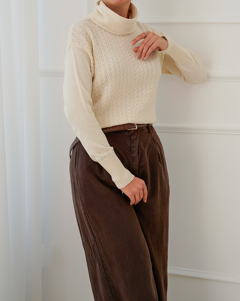 - توضیحات محصول: جنس بلوز بافت می باشد. بلوز یقه اسکی و آستین بلند است.