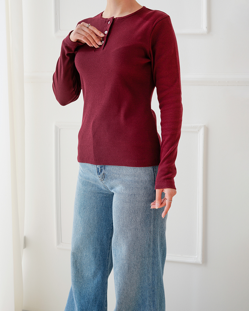 - توضیحات محصول: جنس بلوز نخ و پنبه کبریتی می باشد. بلوز یقه گرد و استین بلند می باشد. دکمه های قسمت یقه کاربردی است. محصول بسیار با کیفیت و لطیف همراه با کشسانی بسیار بالا مناسب استفاده روزمره است.