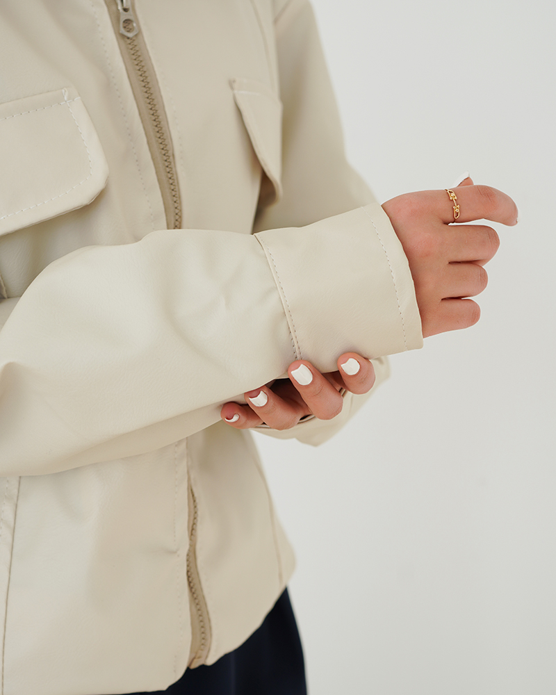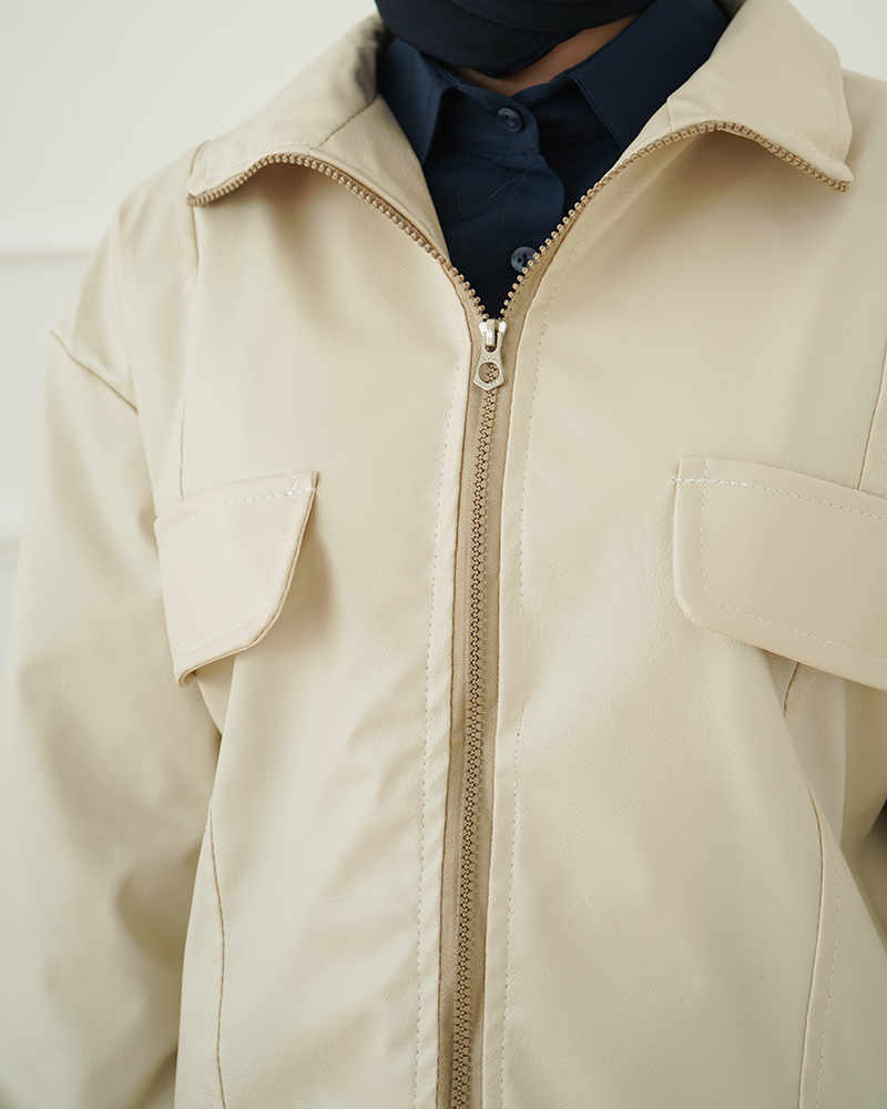- توضیحات محصول: جنس بامبر چرم می باشد. بامبر آستین بلند و آستر دار می باشد. این محصول جلو زیپی است. جیب های بامبر نما هستند.