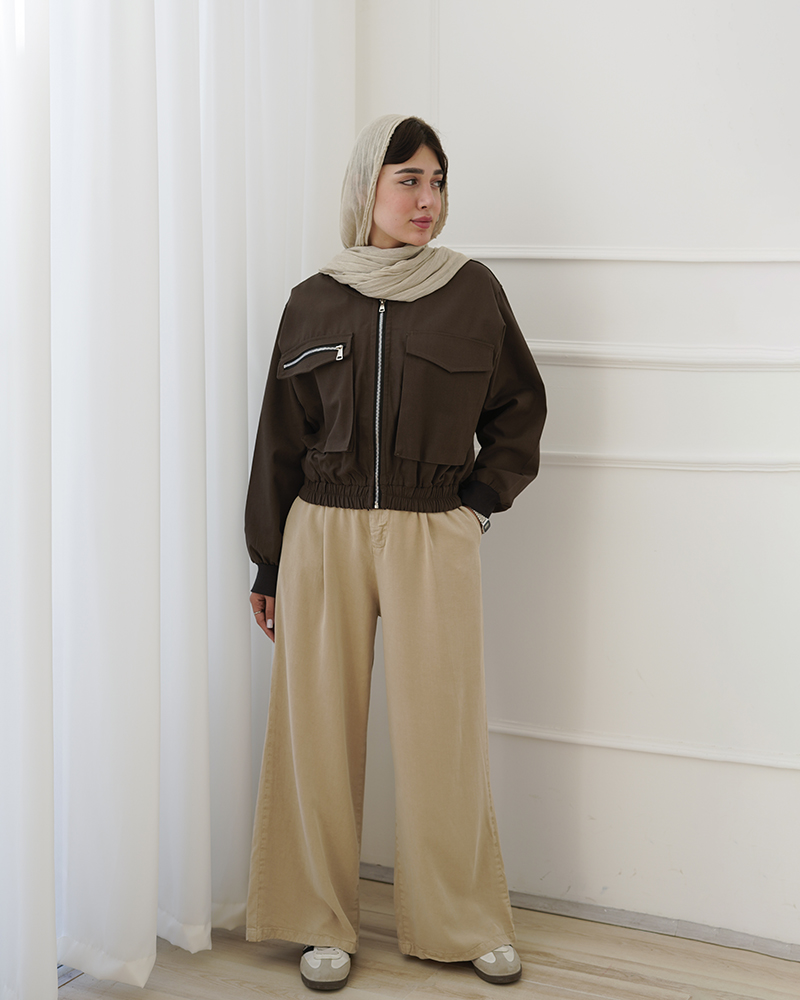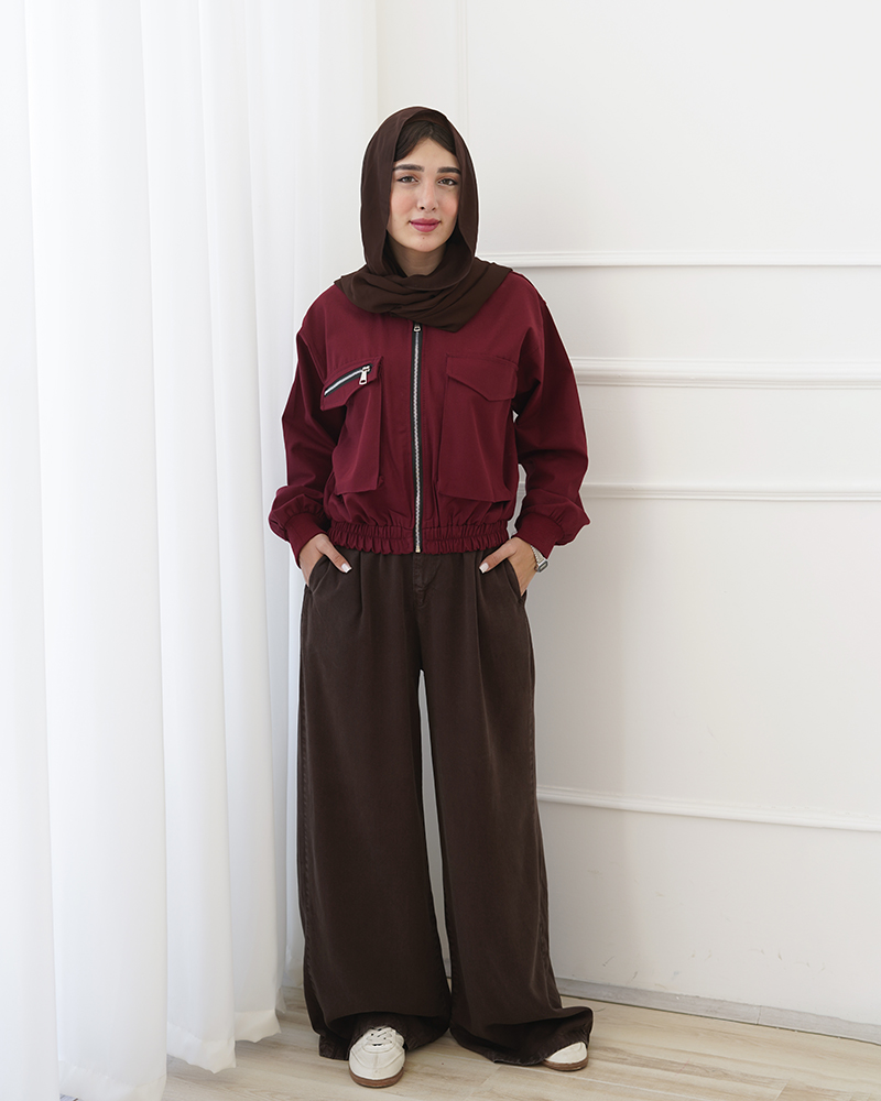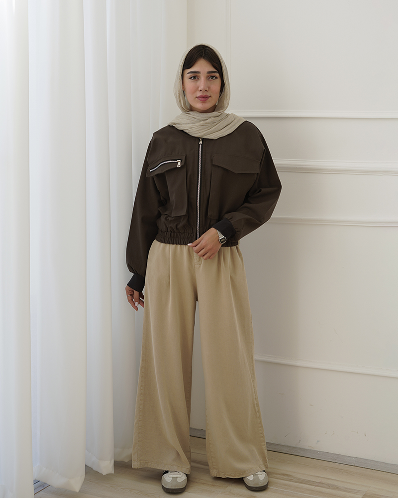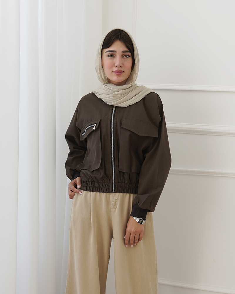 - توضیحات محصول: جنس بامبر، کتان می باشد. بامبر جلو زیپی و قسمت های سر آستین و کمر، کشی است.این محصول دارای دو جیب کاربردی می باشد.
