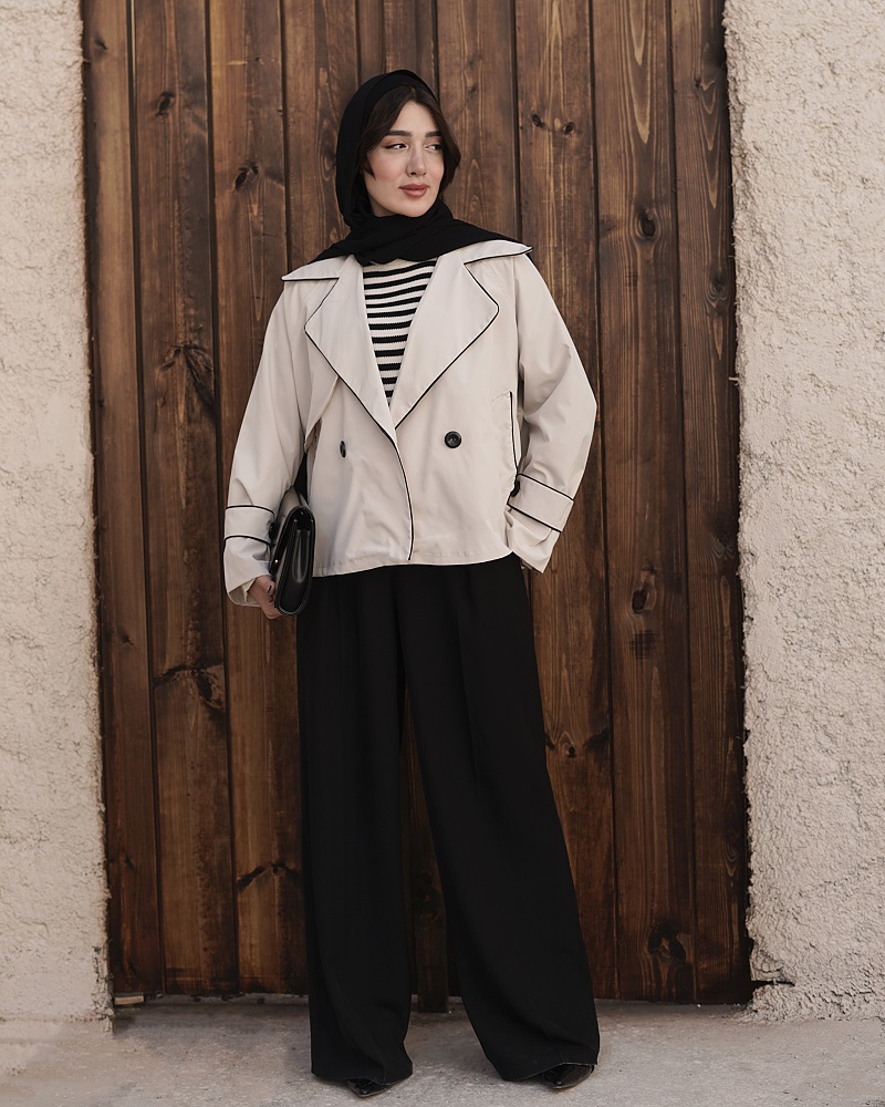 - توضیحات محصول: جنس کت، بارونی(آستردار) است. جیب ها کاربردی می باشد. کت، یقه انگلیسی است.