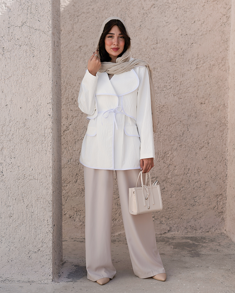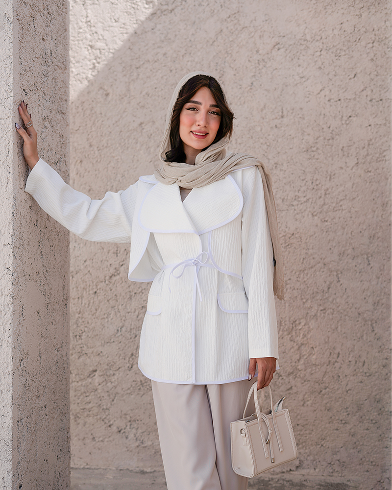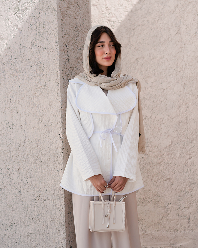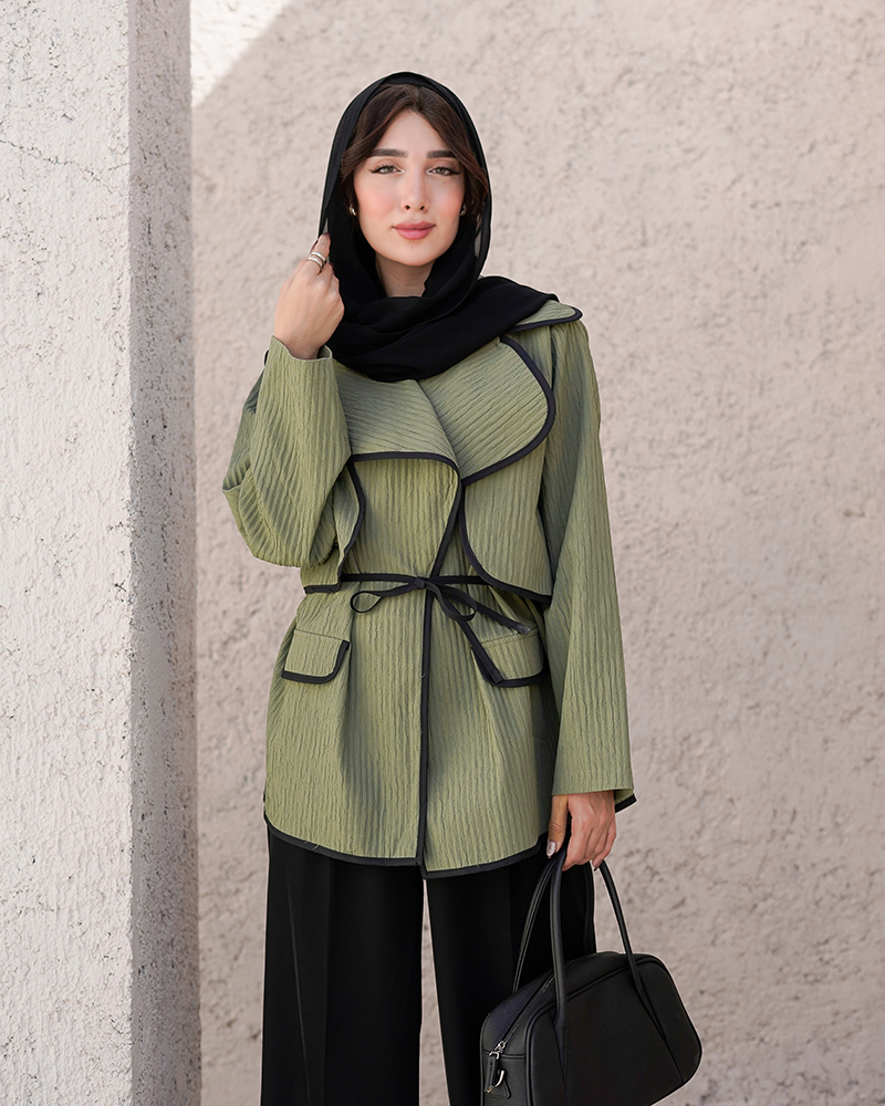 - توضیحات محصول: جنس کت بامبو ژاکارد می باشد. کت یقه انگلیسی و جلو باز بوده و جیب های این کت تما می باشد. این محصول دارای یک بند دور کمر می باشد. کت بسیار خوش دوخت مناسب استفاده روزمره است.