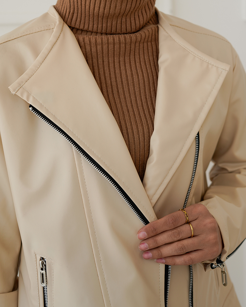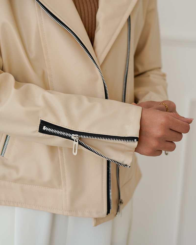- توضیحات محصول: جنس کت چرم می باشد. کت یقه گرد و آستین بلند بوده و زیپ های قسمت جلو و سر استین این قسمت کاربردی می باشد. کت آستر دار و دارای دو جیب کاربردی می باشد.