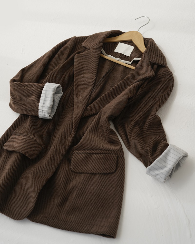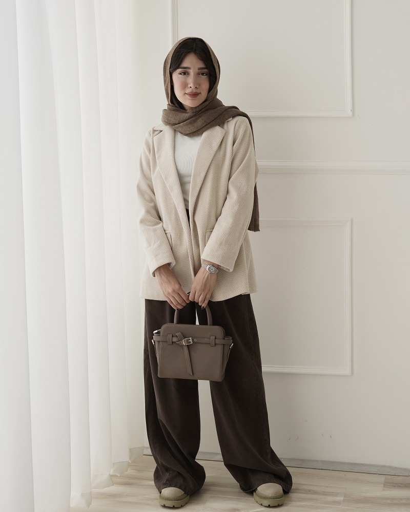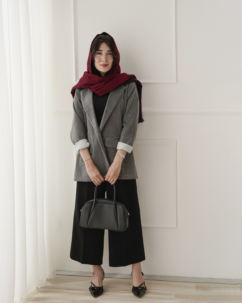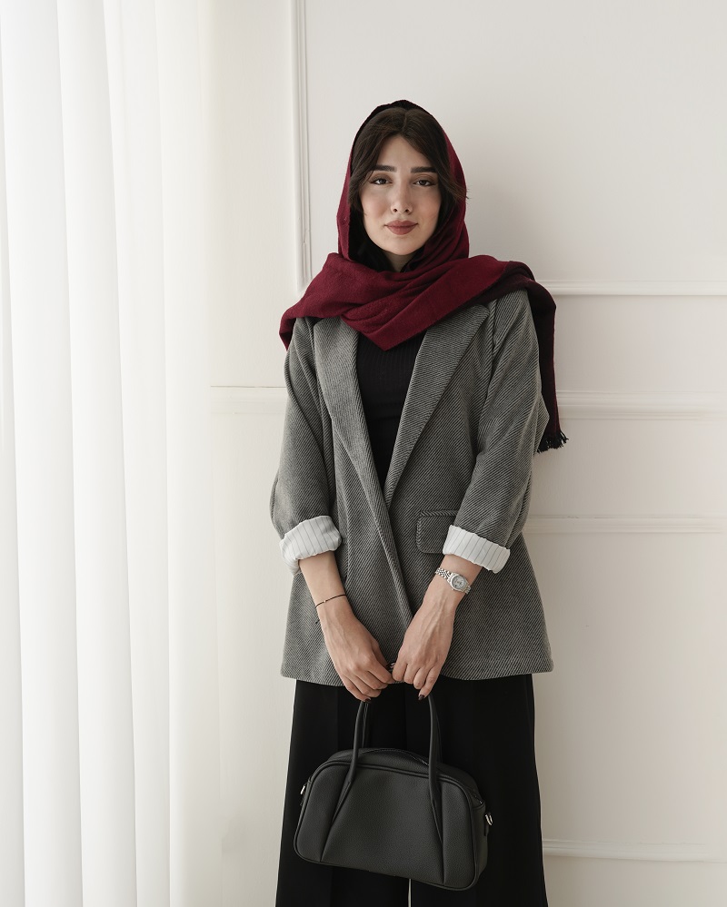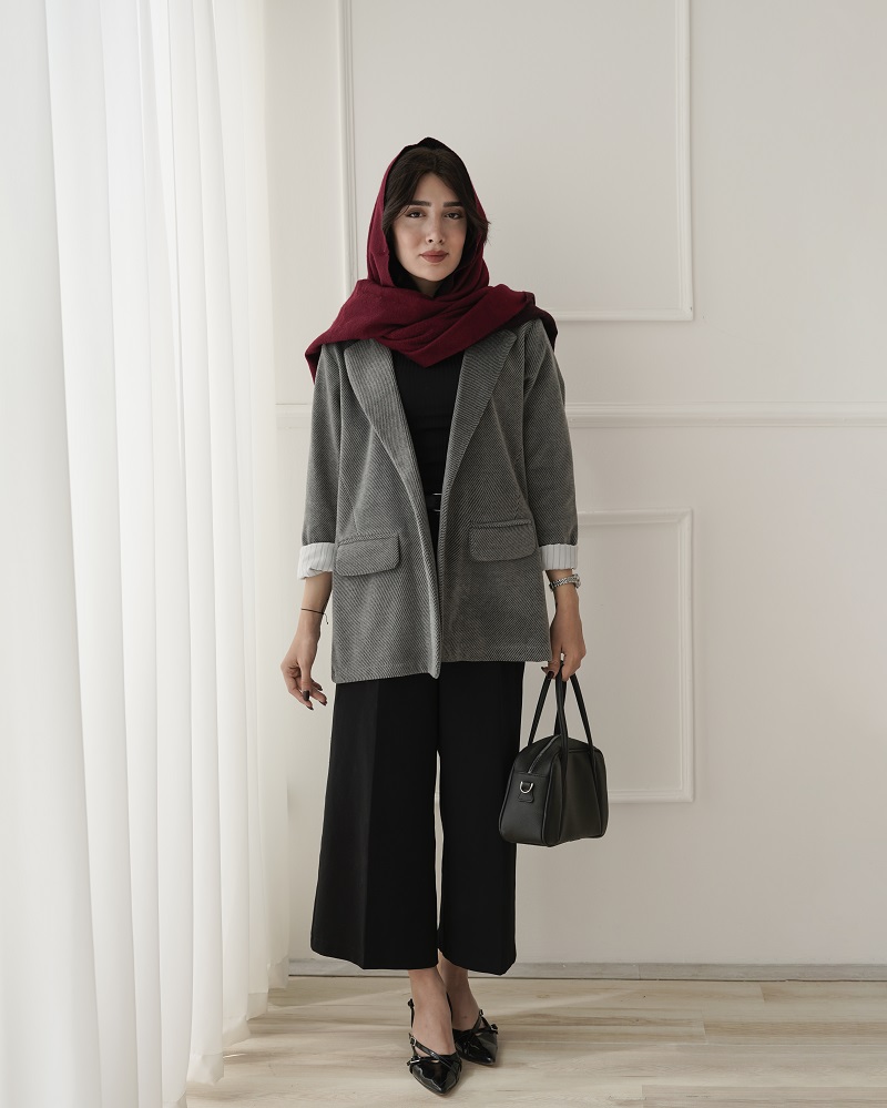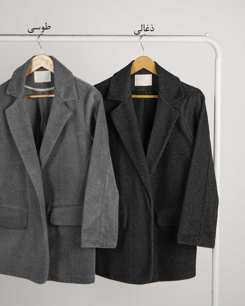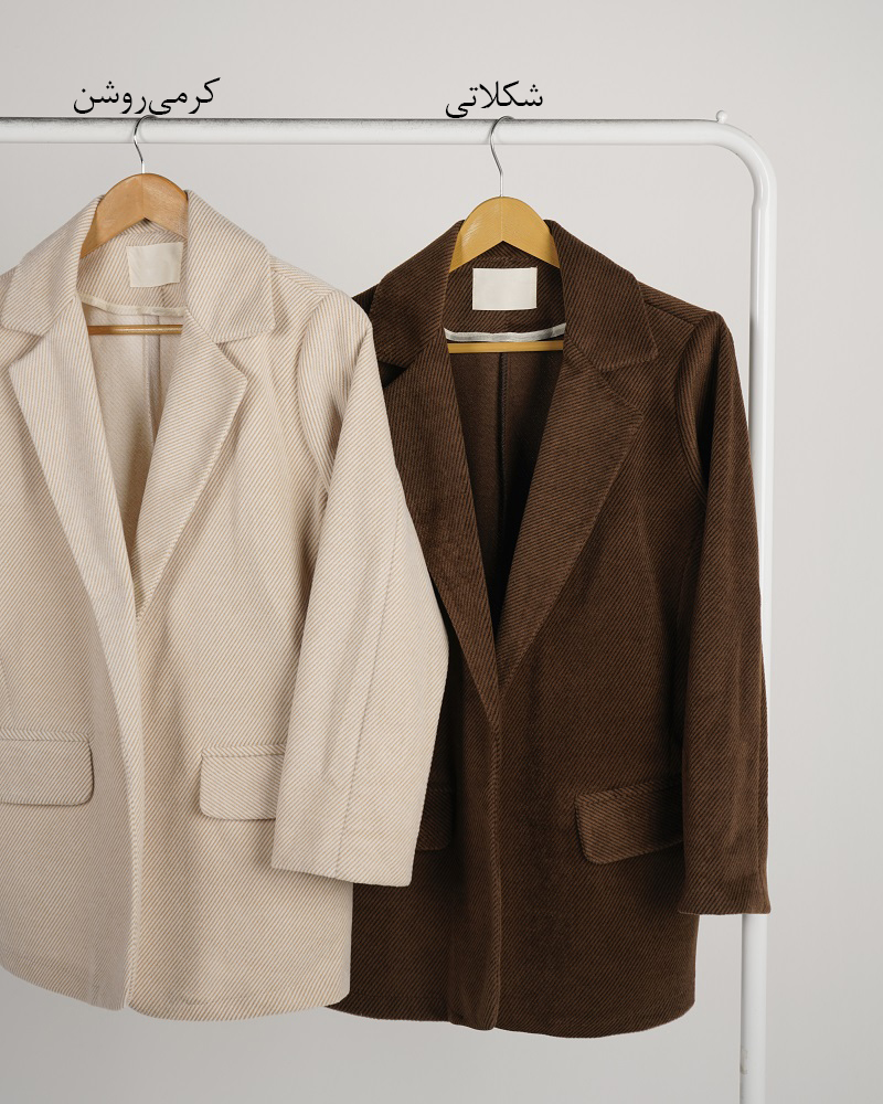 - توضیحات محصول: جنس کت، فوتر است. کت، یقه انگلیسی و جیب ها، نما هستند.