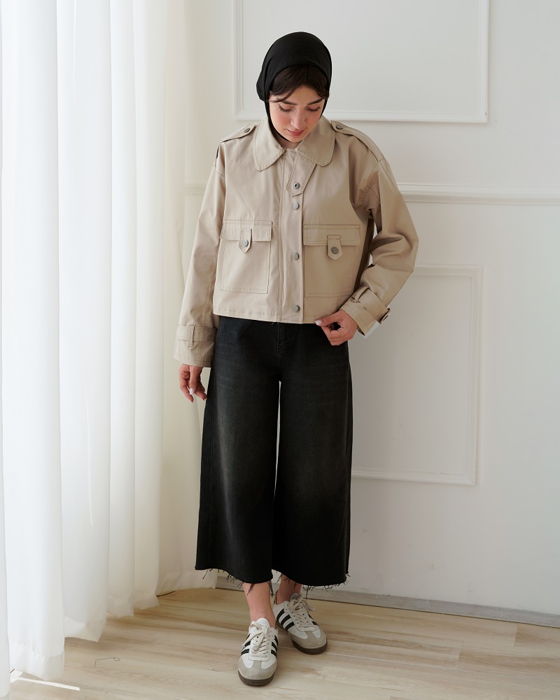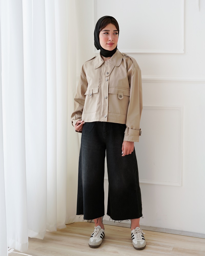 - توضیحات محصول: جنس کت کراپ، کتان است. دارای دو جیب کاربردی می باشد.