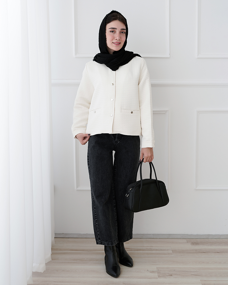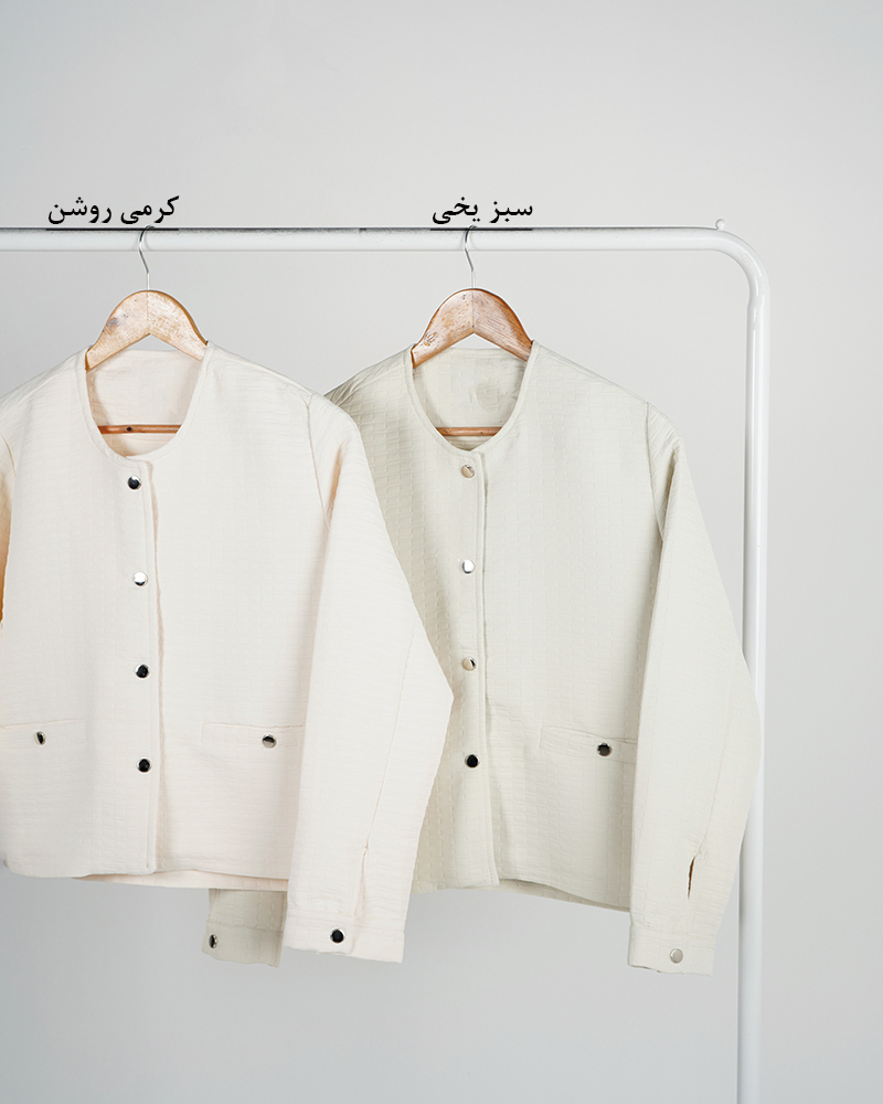 - توضیحات محصول: جنس کت فریال می باشد. کت یقه گرد و جلو دکمه می باشد. دکمه های این محصول از نوع پرسی بوده و در قسمت جلو و سر آستین کاربردی می باشد. این محصول دارای دو جیب کاربردی است.