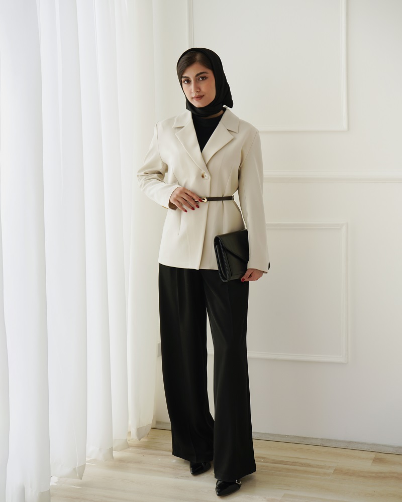 - توضیحات محصول: جنس کت کرپ مازراتی است. کت بسیار خوش دوخت ،یقه انگلیسی می باشد. دارای یک کمربند چرمی است. قسمت جلوی این کت جهت ایستایی بهتر آستر کشی شده است.