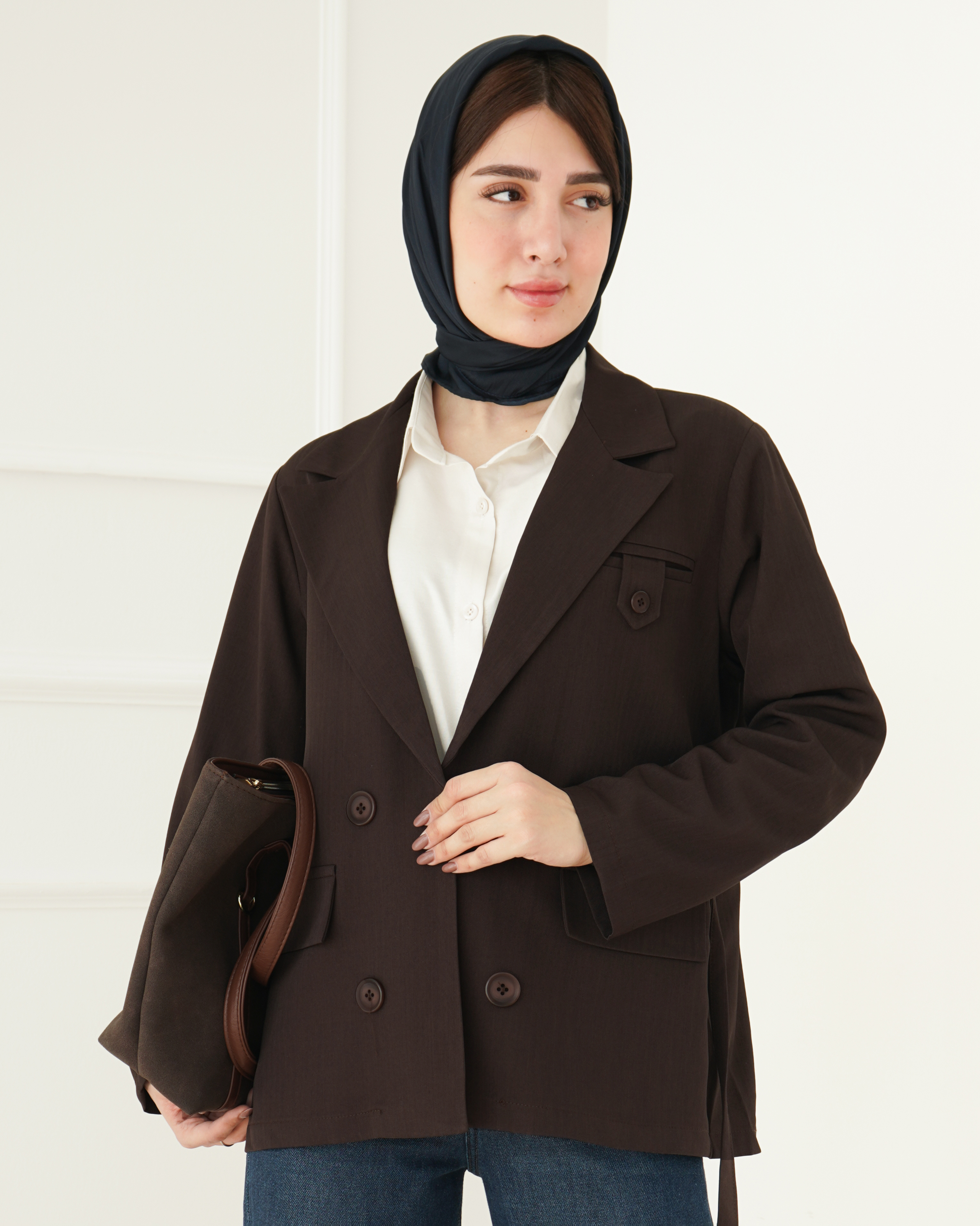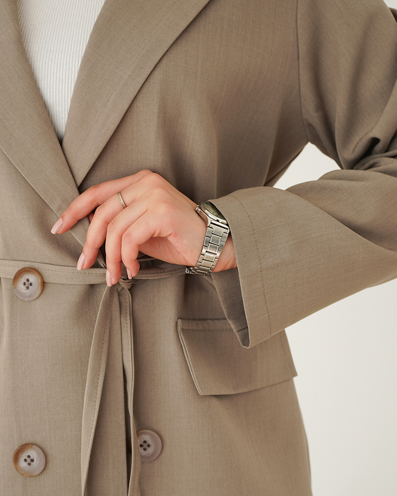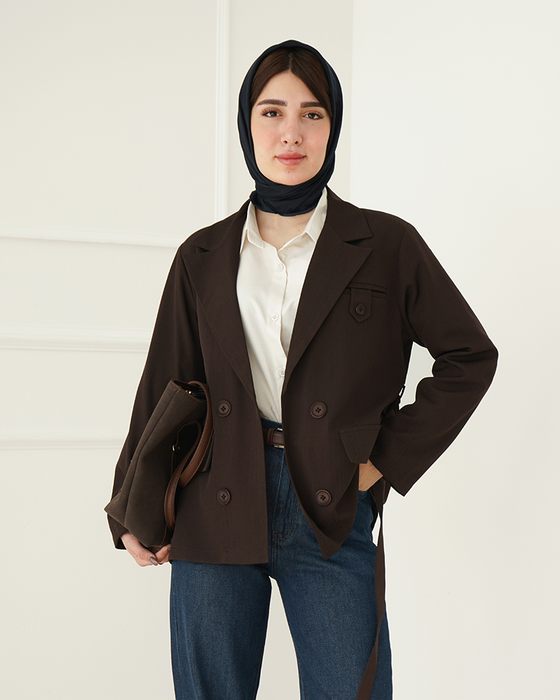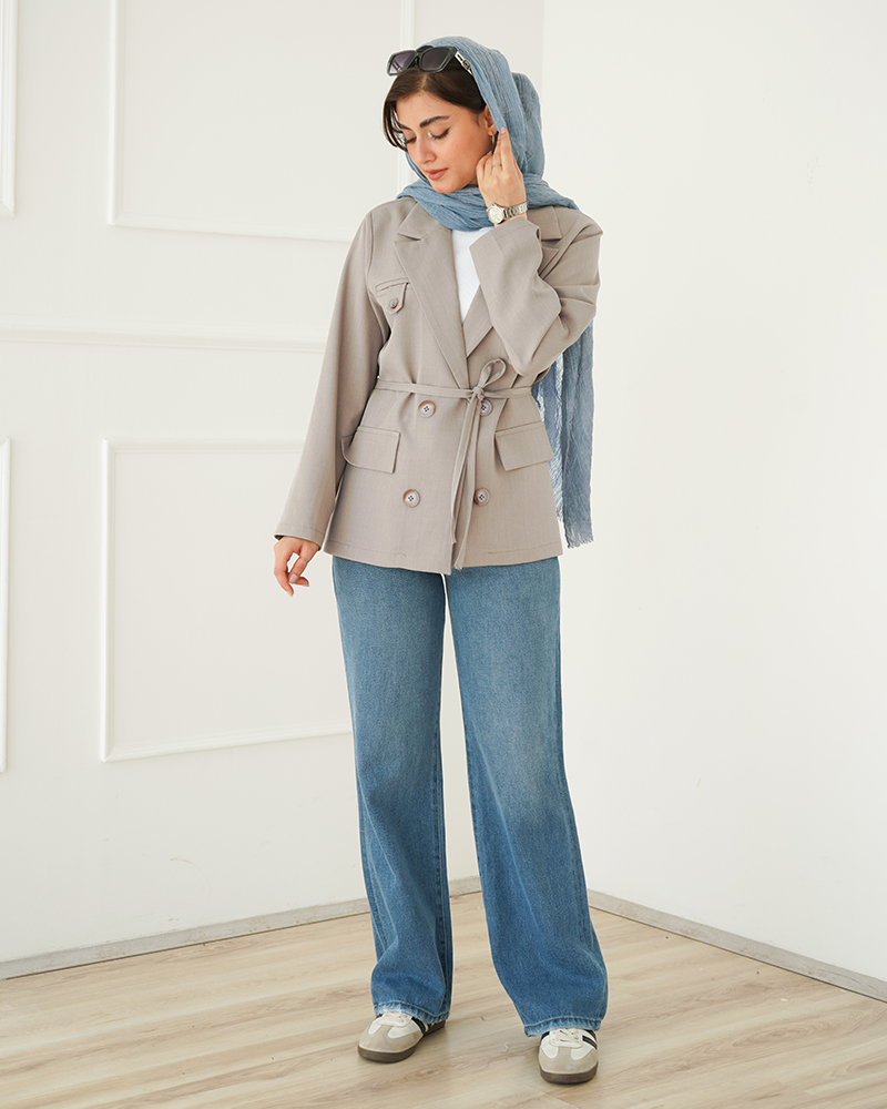 - توضیحات محصول: جنس کت بزایاق می باشد. کت یقه انگلیسی و قسمت جلوی کت جهت ایستایی بهتر لایی کوبی شده است. جیب ها و دکمه های قسمت جلوی کت نما می باشد. این محصول دارای یک کمربند از جنس لباس جهت تنظیم دور کمر می باشد.