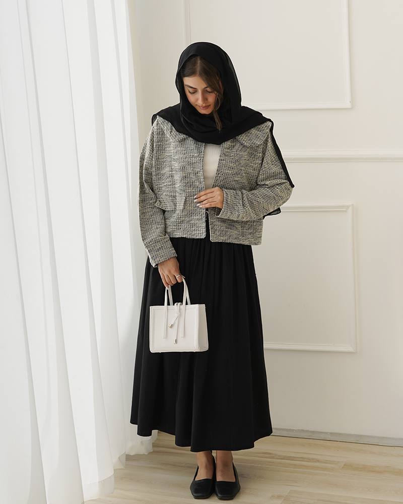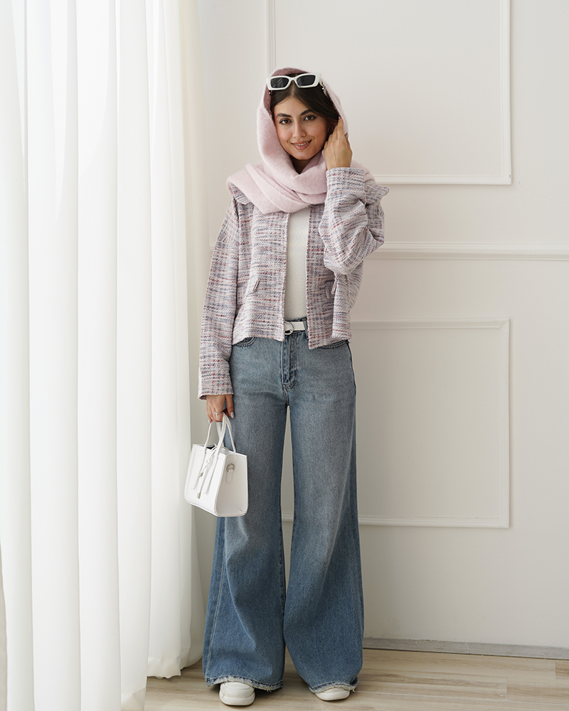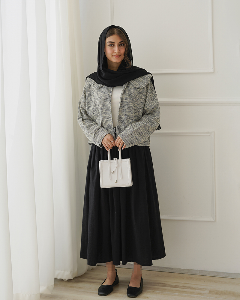 - توضیحات محصول: جنس کت بوکله پاییزی می باشد. کت یقه ب ب و جلو بازمی باشد. این محصول آستین بلند بوده و جیب های کت نما هستند.