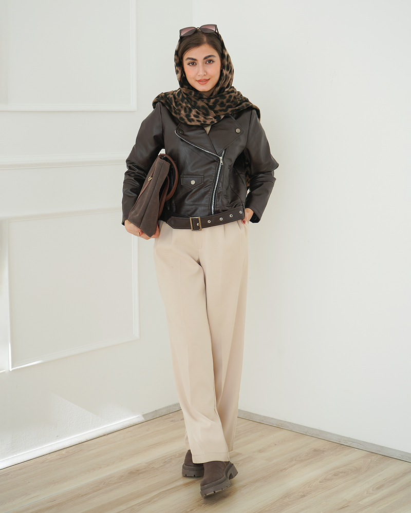 - توضیحات محصول: جنس کت چرم می باشد. کت یقه انگلیسی و آستین بلند است. قسمت جلوی این محصول زیپی و کت آستردار می باشد.