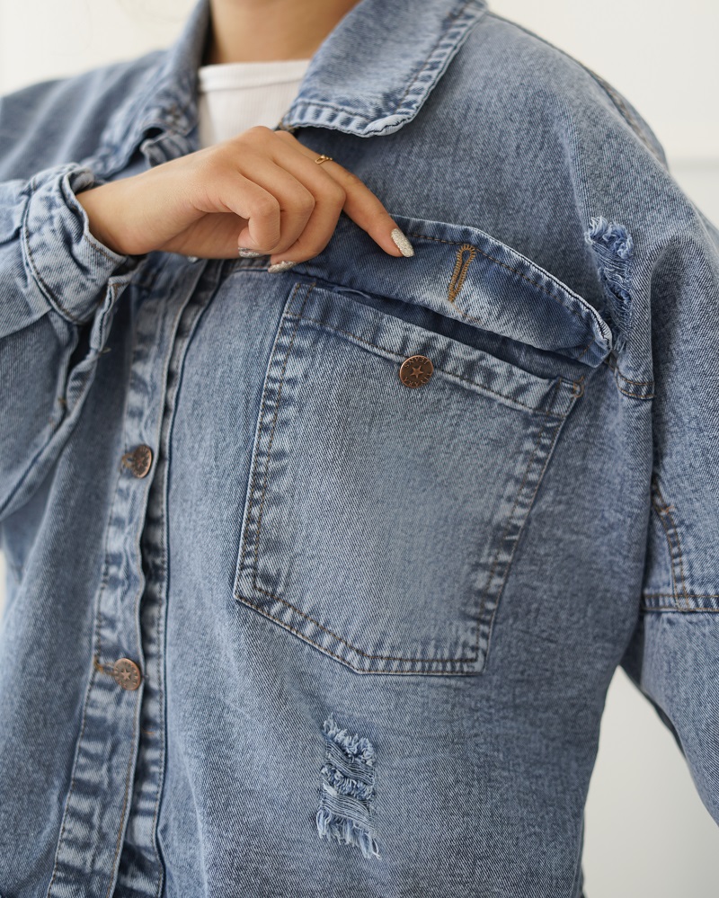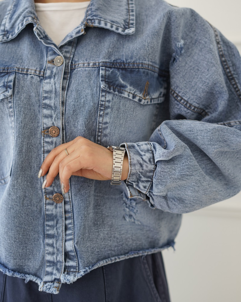 - توضیحات محصول: جنس کت جین می باشد. کت یقه مردانه و آستین بلند است. دکمه های فلزی کت در قسمت جلو و سر آستین کاربردی است. جیب های کت کابردی هستند.