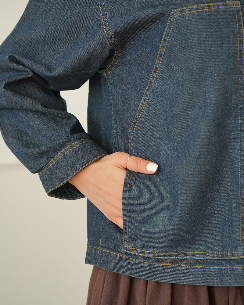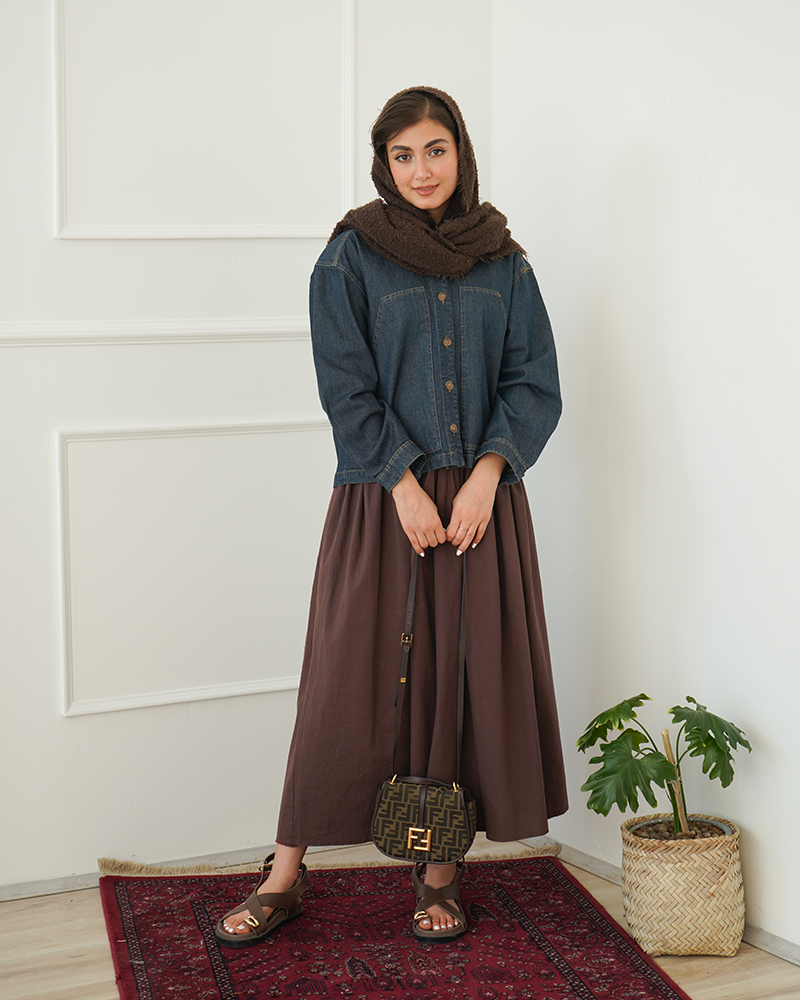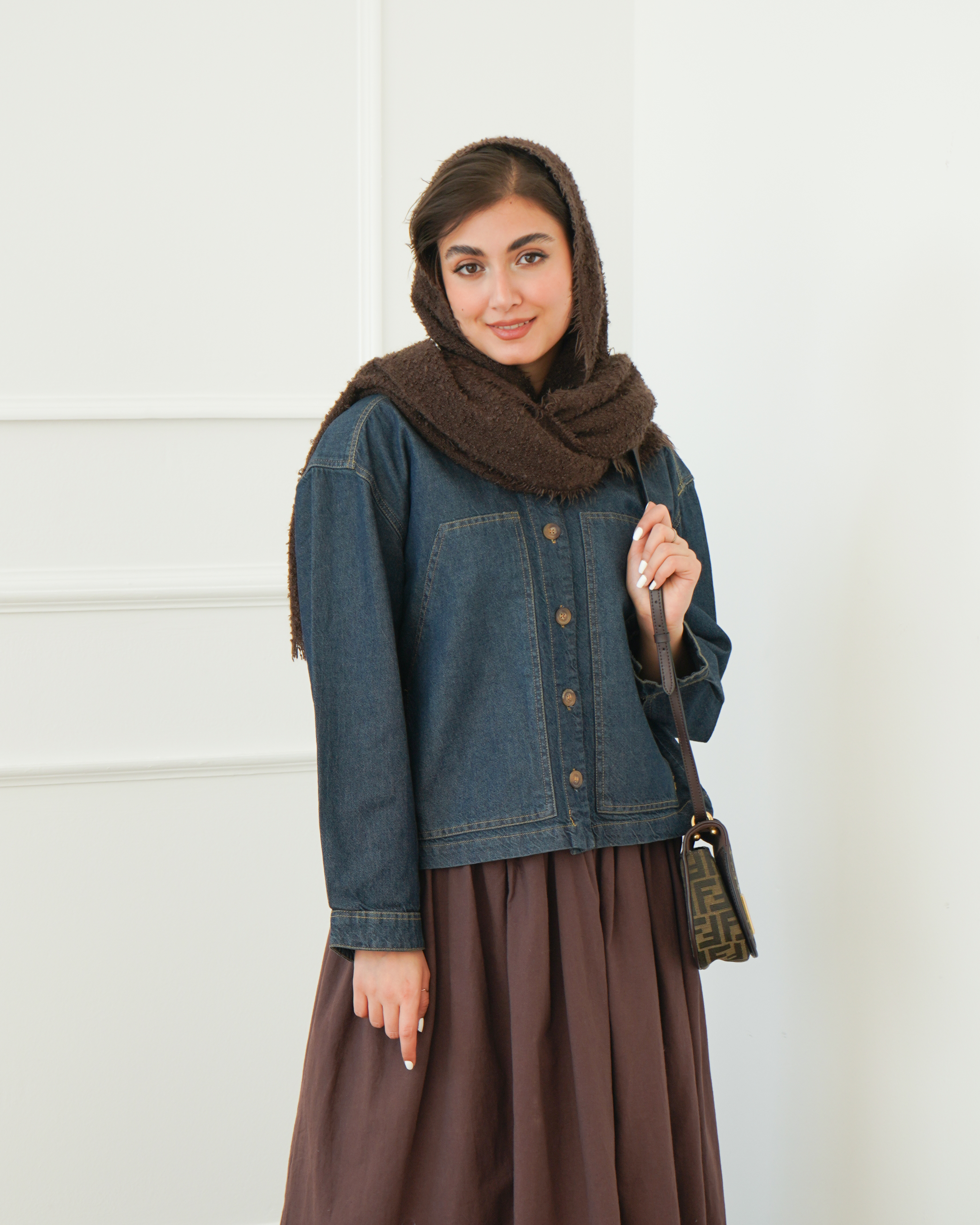 - توضیحات محصول: جنس کت جین می باشد. کت یقه گرد و آستین بلند است. دکمه های قسمت جلو کت کاربردی است.