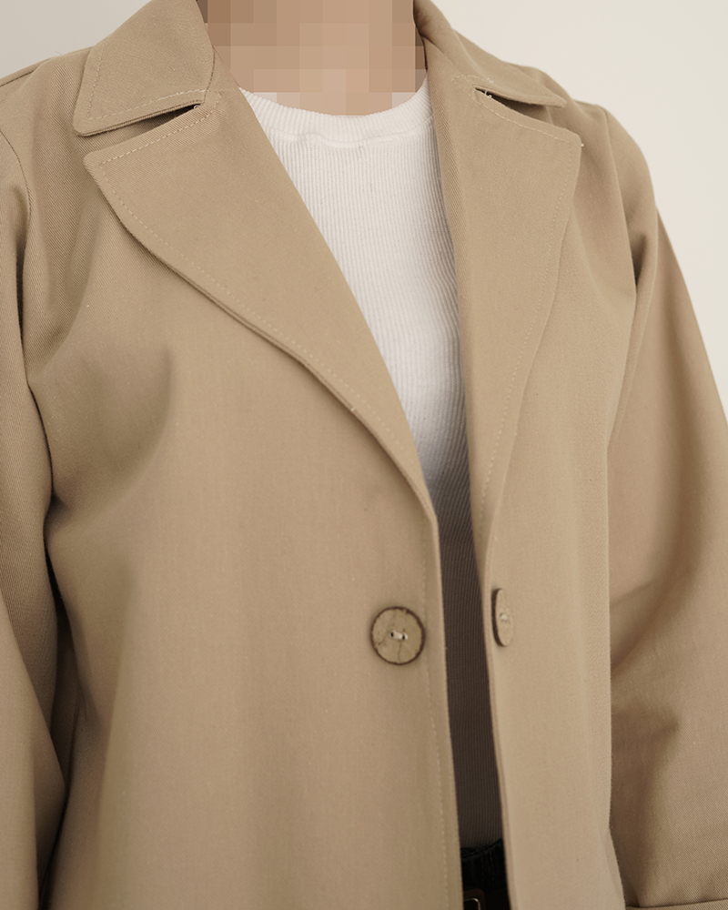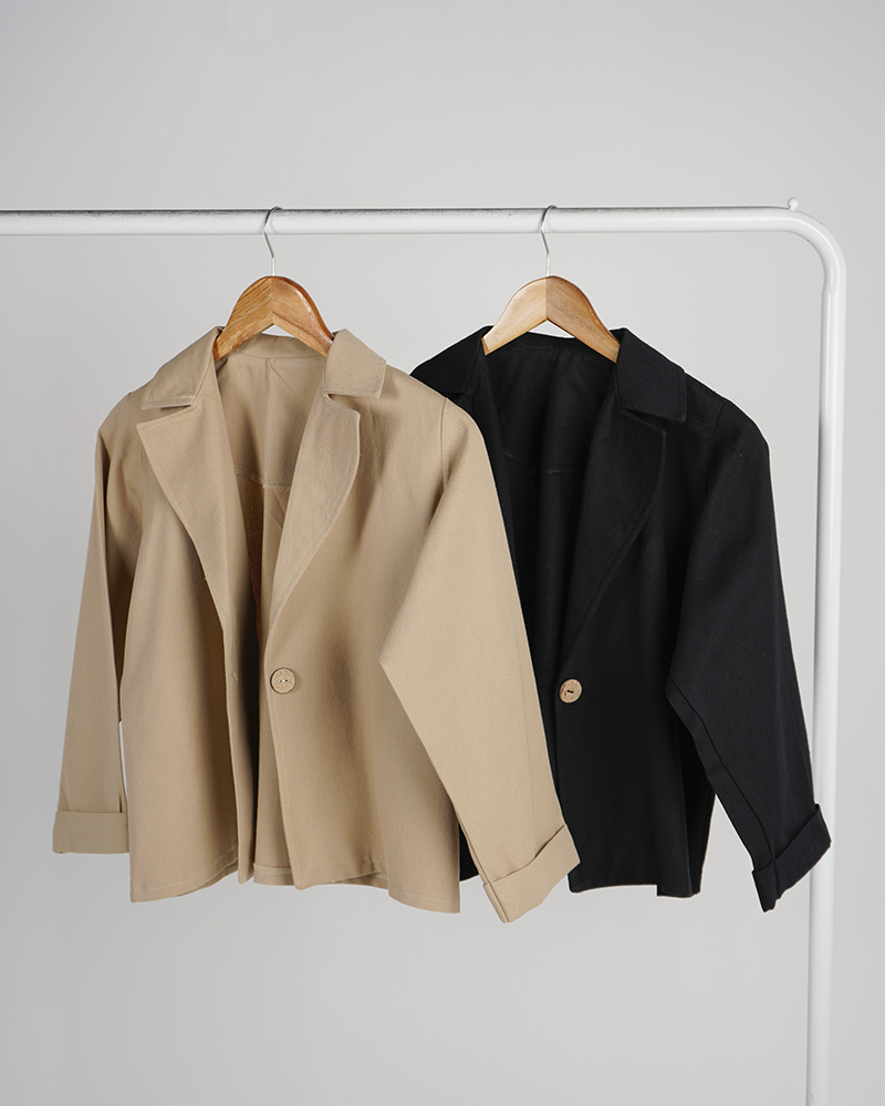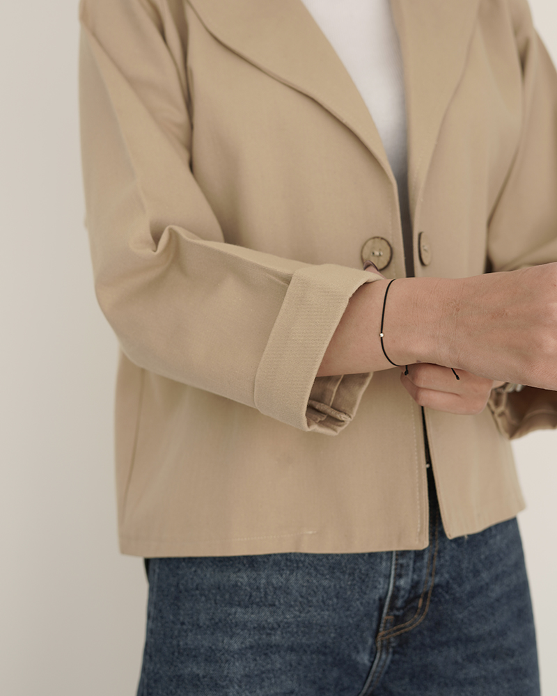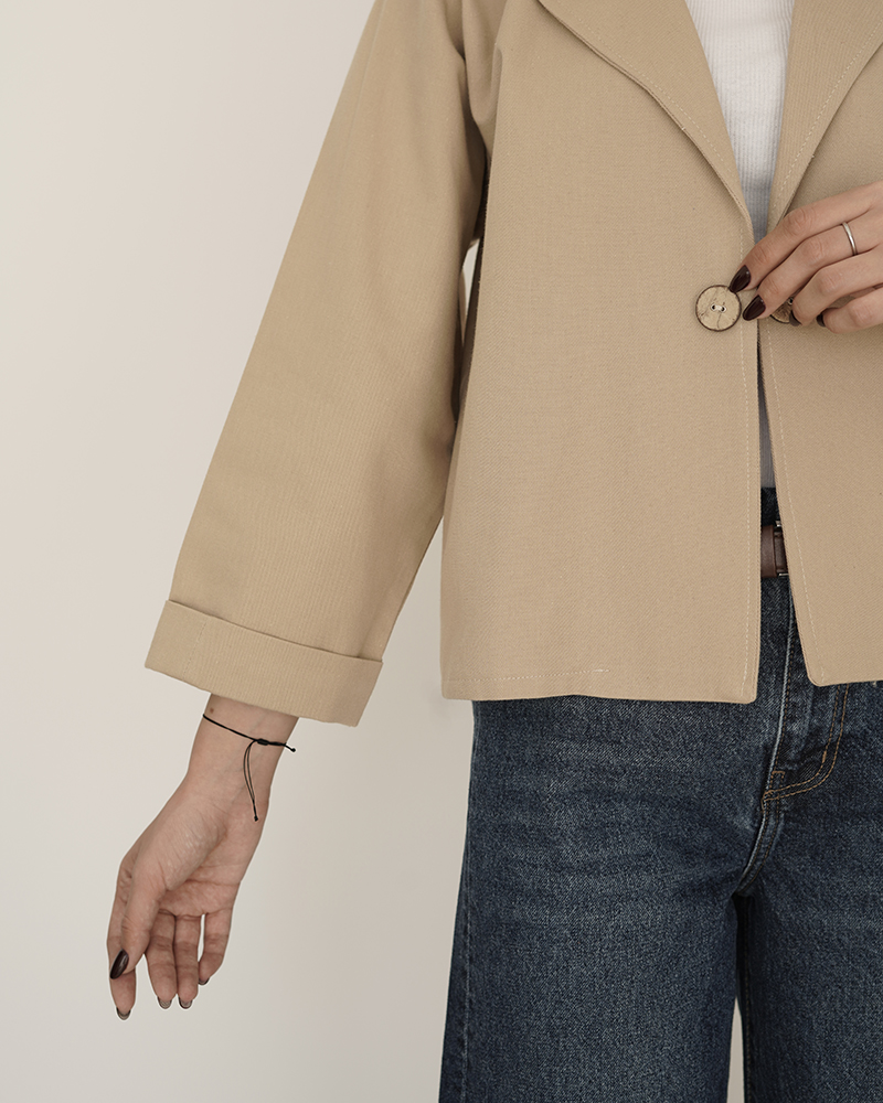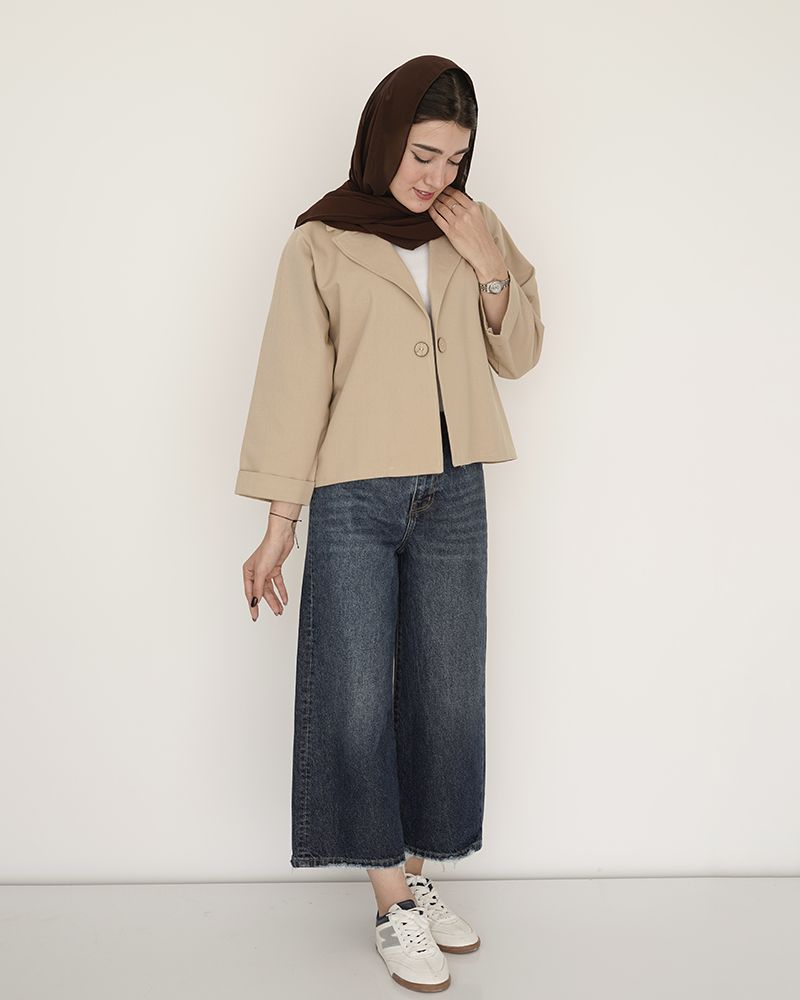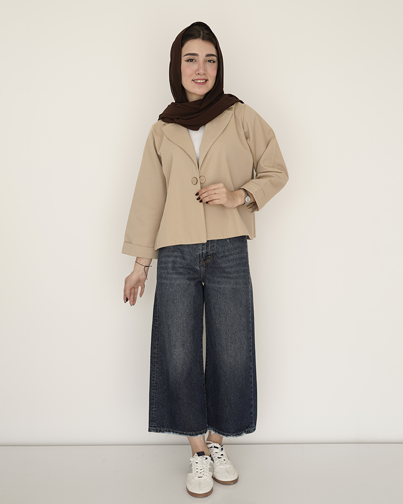 - توضیحات محصول: جنس کت کتان می باشد. کت یقه انگلیسی و آستین بلند می باشد. سر آستین این محصول پاکتی است. دکمه های جلوی این کت نما بوده و کت فاقد جیب است.