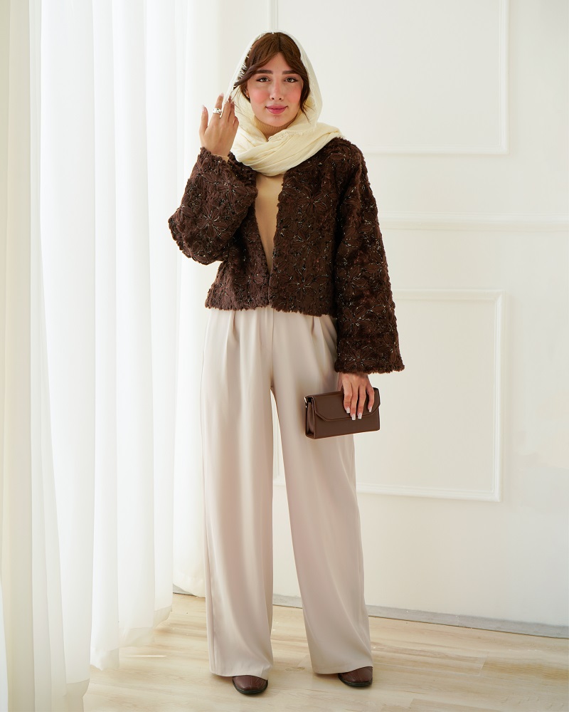 - توضیحات محصول: جنس کت کراپ،خز کارشده است. کت کراپ، آستردار می باشد. این محصول بسیار نرم است.