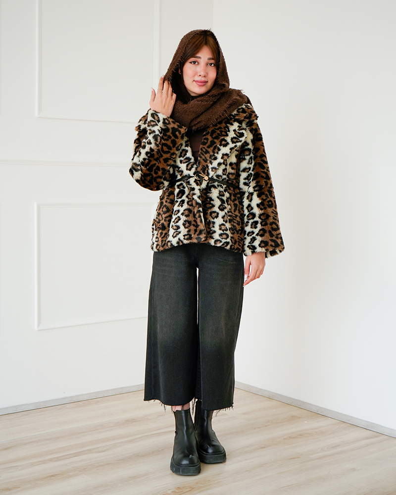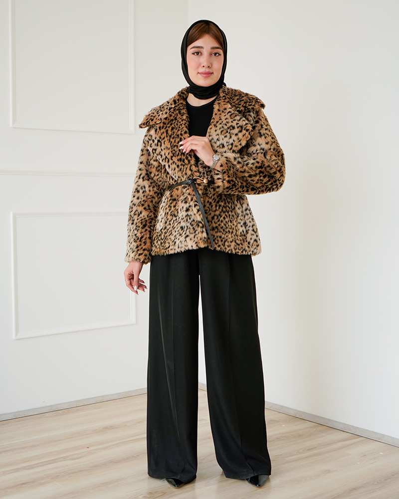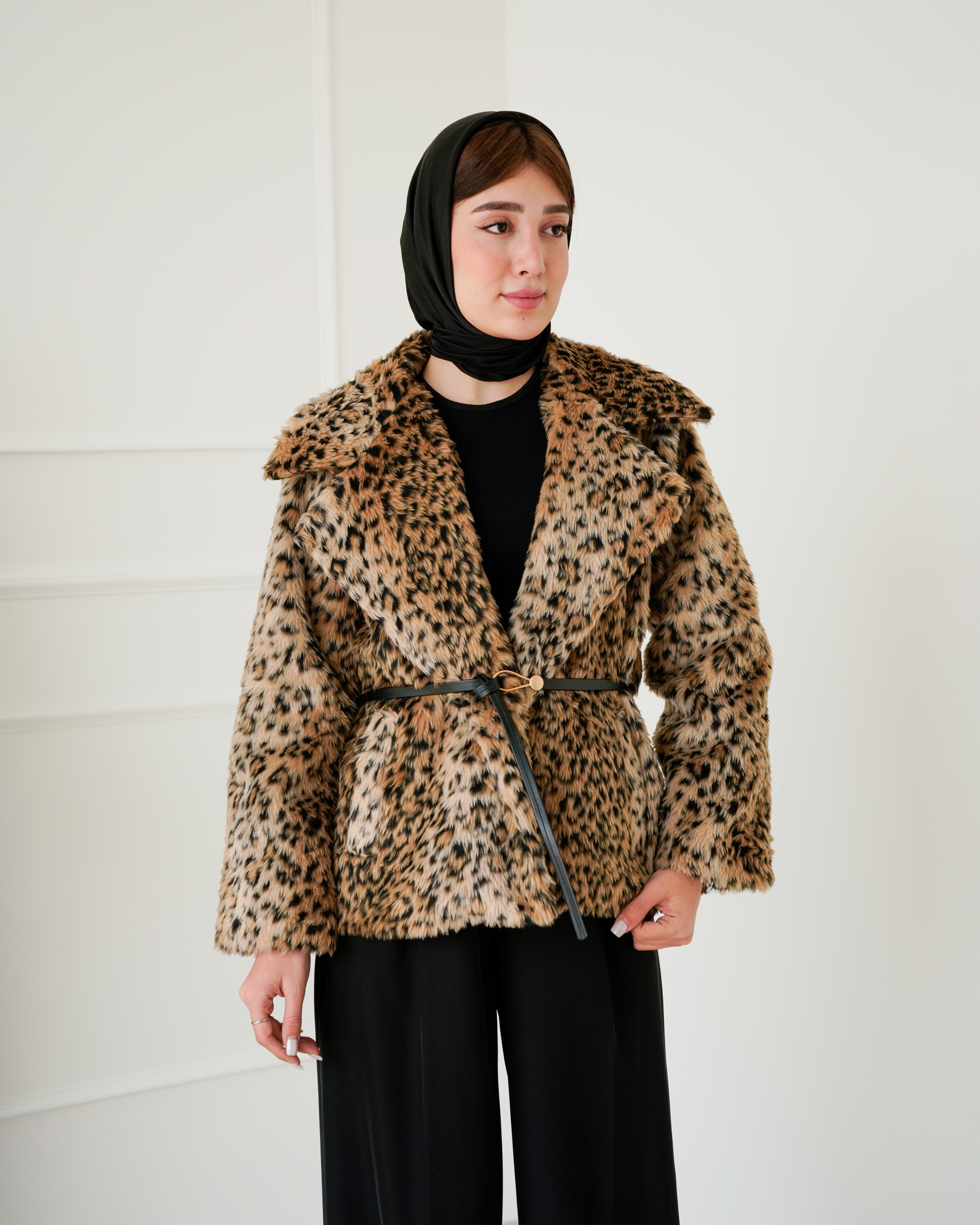- توضیحات محصول: جنس کت، خز است. کت یقه انگلیسی و آستردار می باشد. دارای یک کمربند چرمی است.