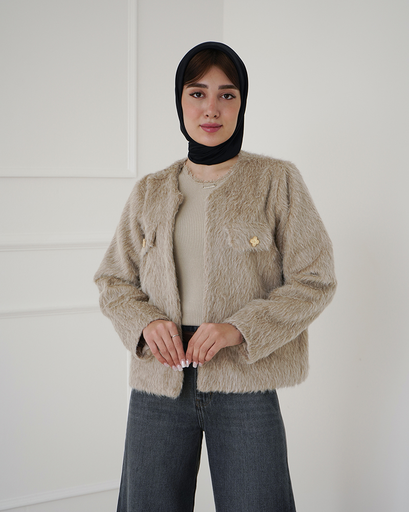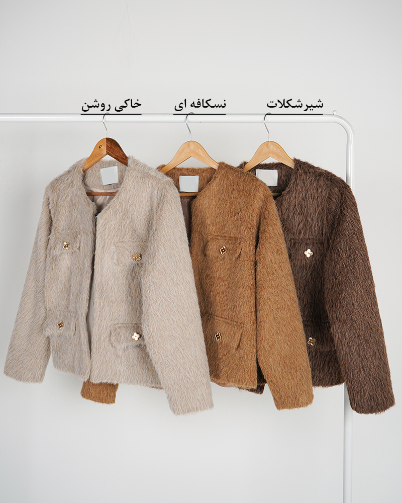 - توضیحات محصول: جنس کت،خز است. کت، آستردار می باشد. جیب ها نما هستند.